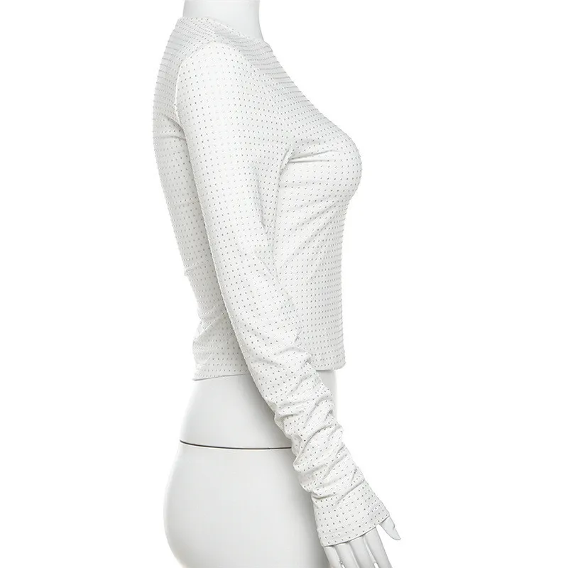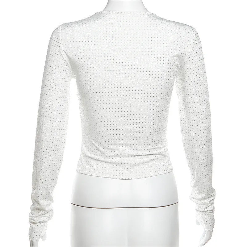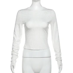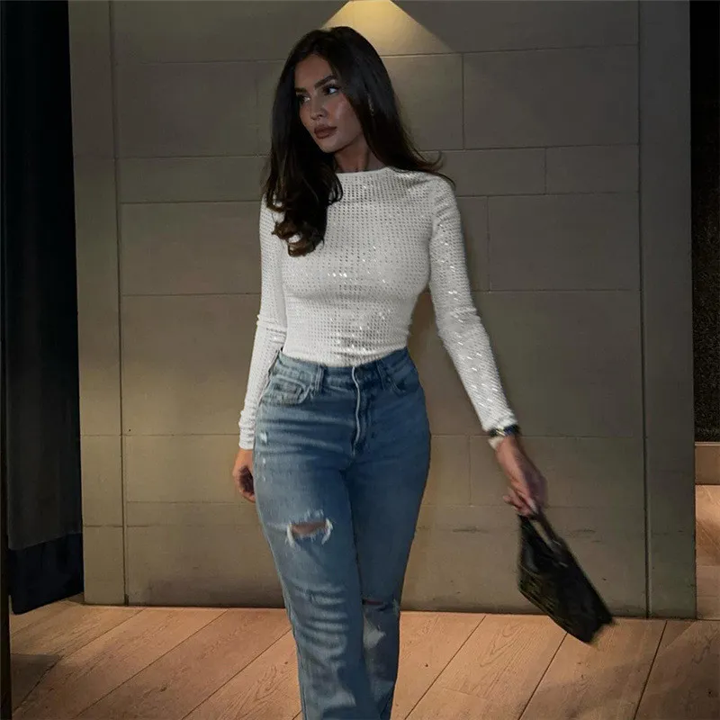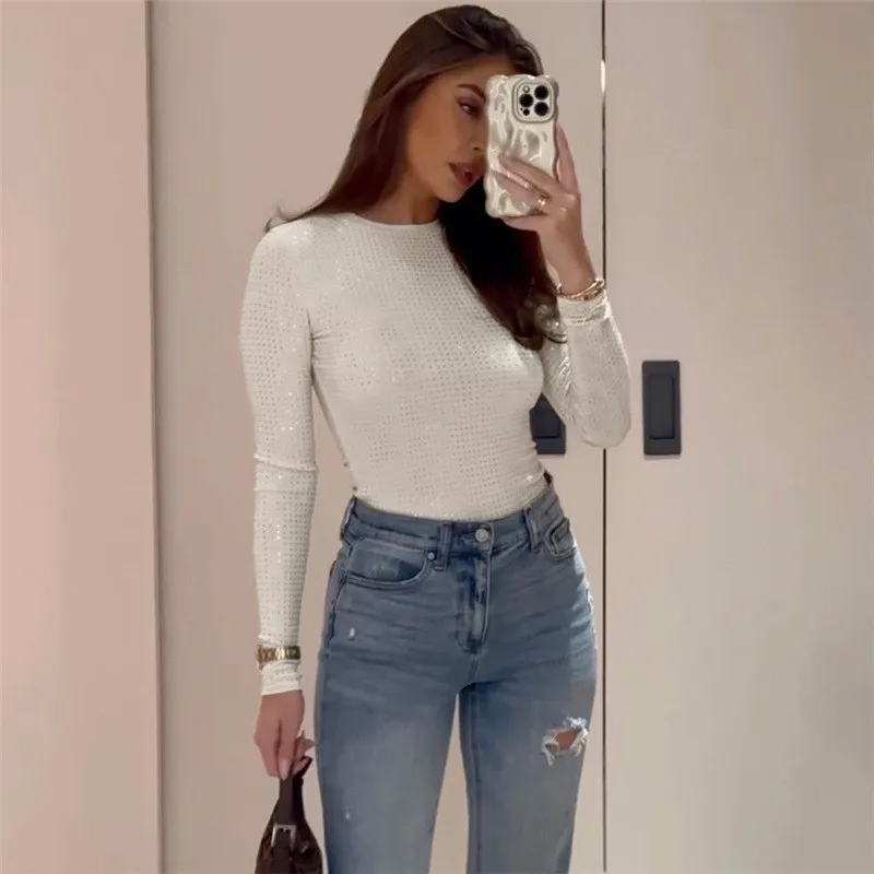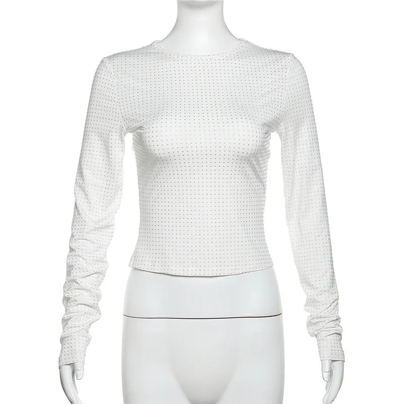 | Product Name | Spring Women’s Fashion Round Neck Long Sleeve Beaded Slim Short T-Shirt |