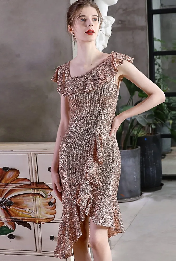 | Product Name | Summer Occassional Gold Sequin Fishtail Cocktail Dress |