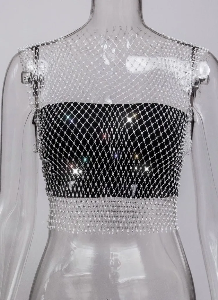 | Product Name | Summer Sexy Fishnet Beaded Club Crop Top |