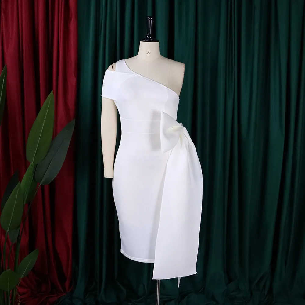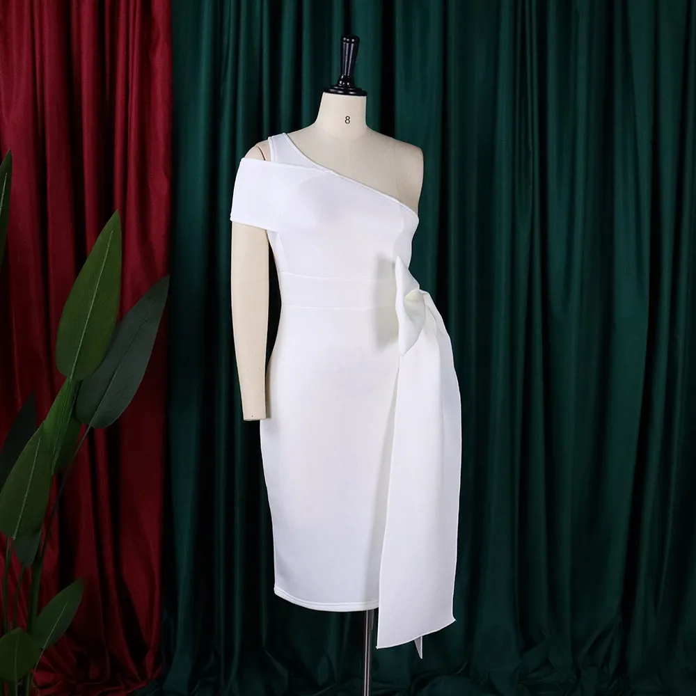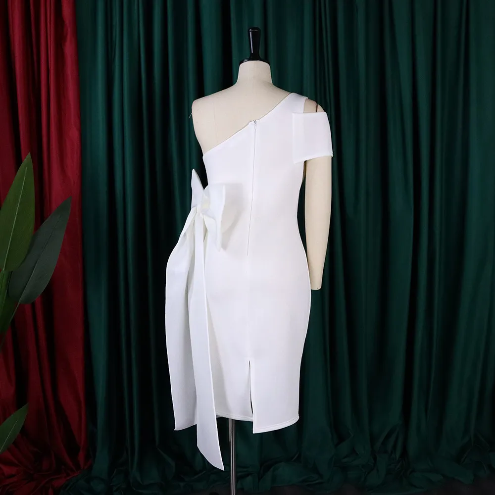 | Product Name | Summer Sexy White One Shoulder Short Sleeve With Bow-Tie Party Dress |