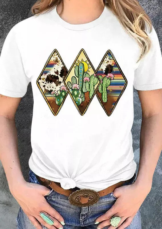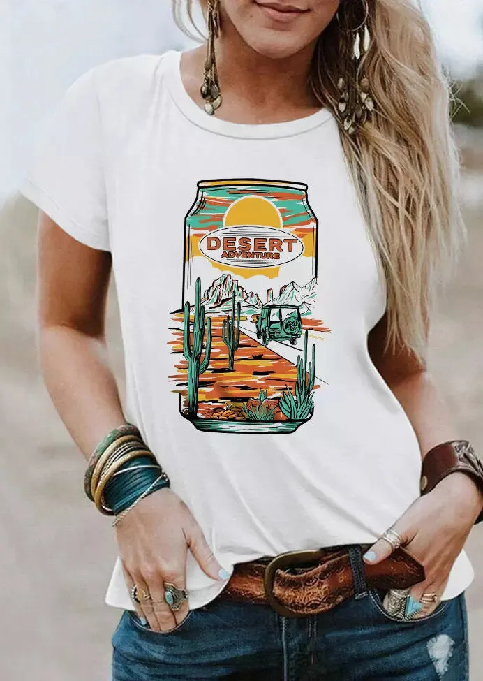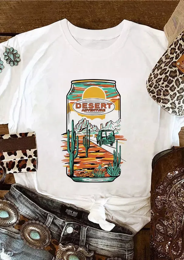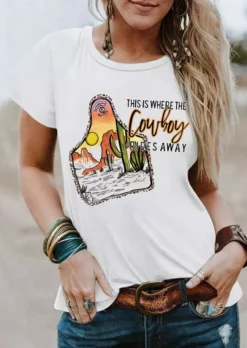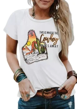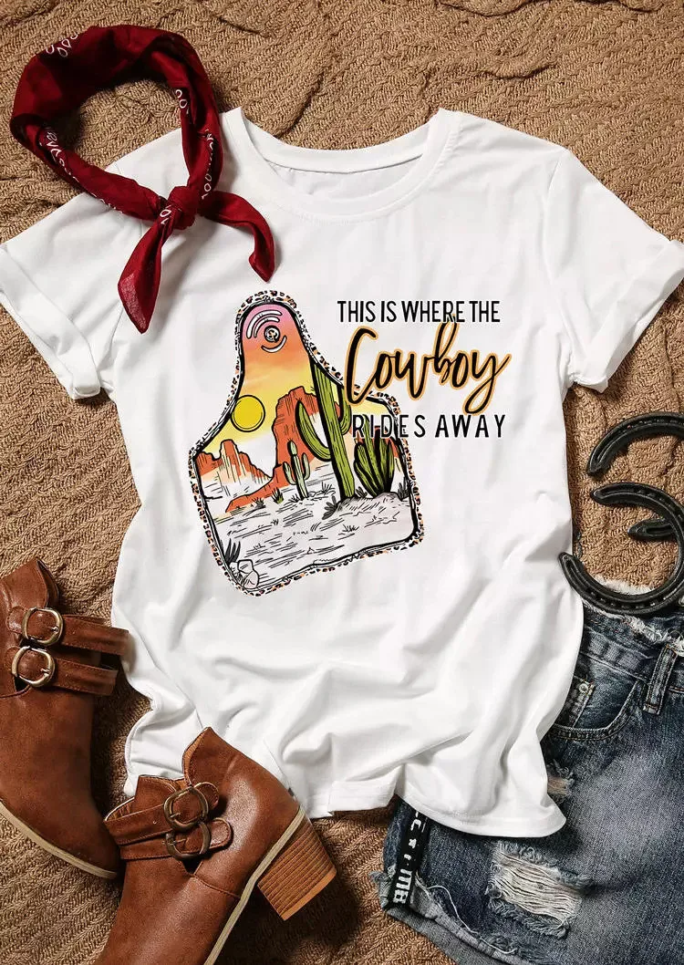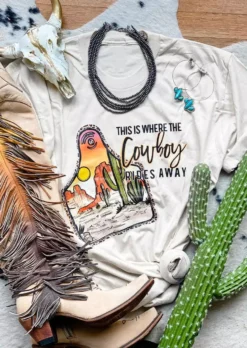 | Product Name | Summer Vintage Graphic Here’s Where Denim Rides a Cactus Round Neck Pullover T-Shirt |