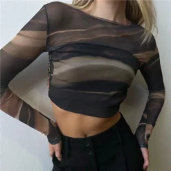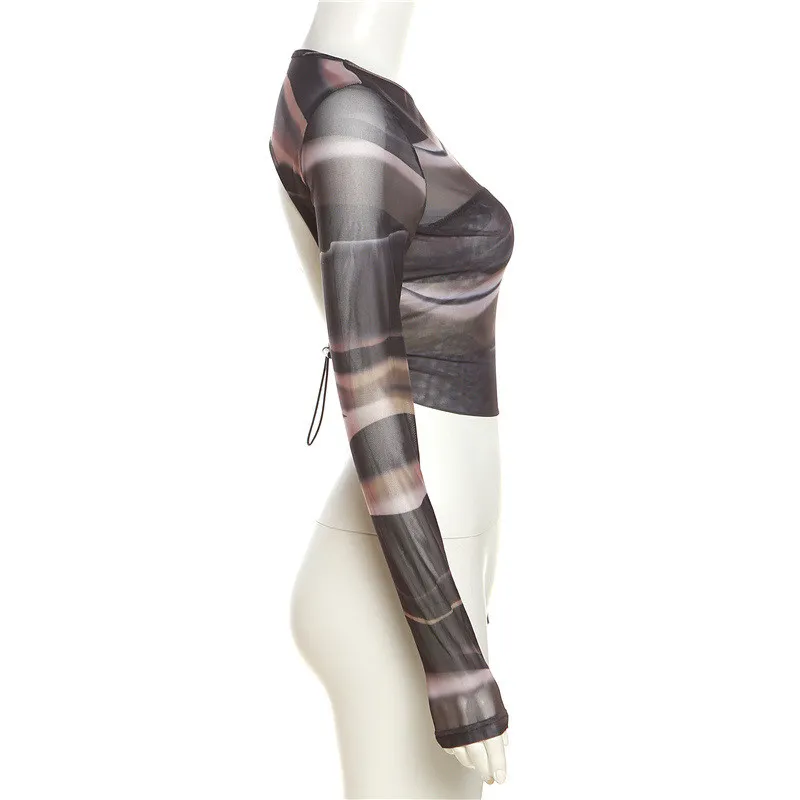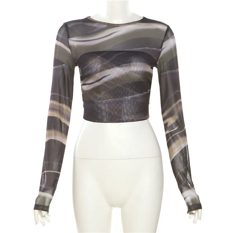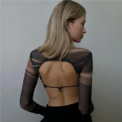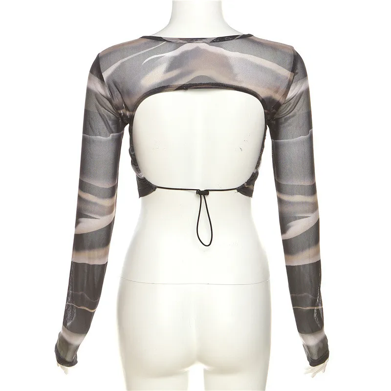 | Product Name | Summer Women Printed Mesh Sexy Backless Crop T-Shirt |