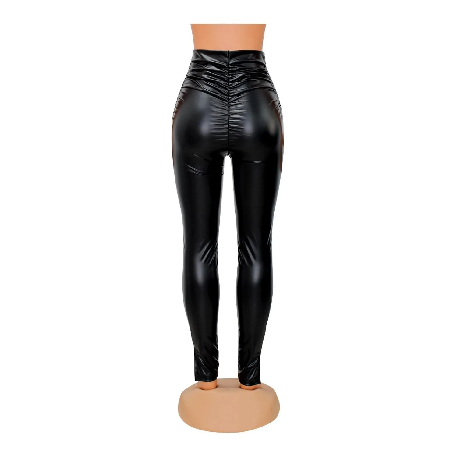 | Product Name | Summer women’s fashion sexy Tight Fitting Pu Leather pants pleated high waist pants |