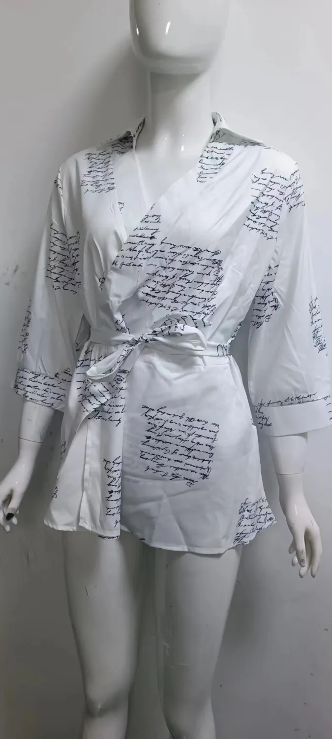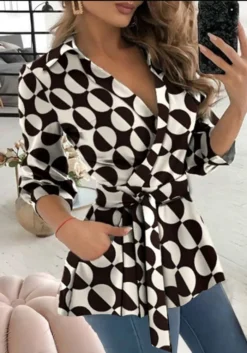 | Product Name | Women Autumn Printed Long Sleeve V Neck Belt Shirt |