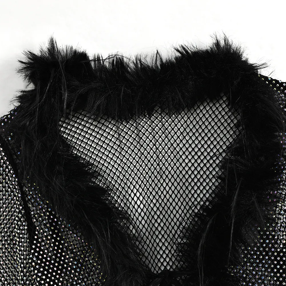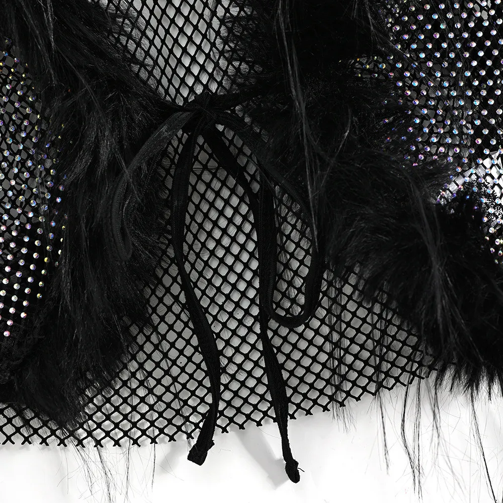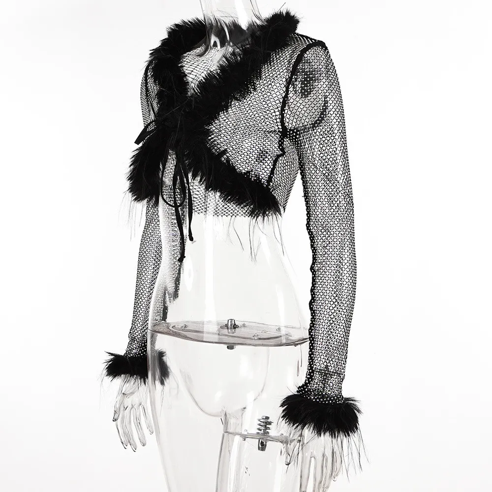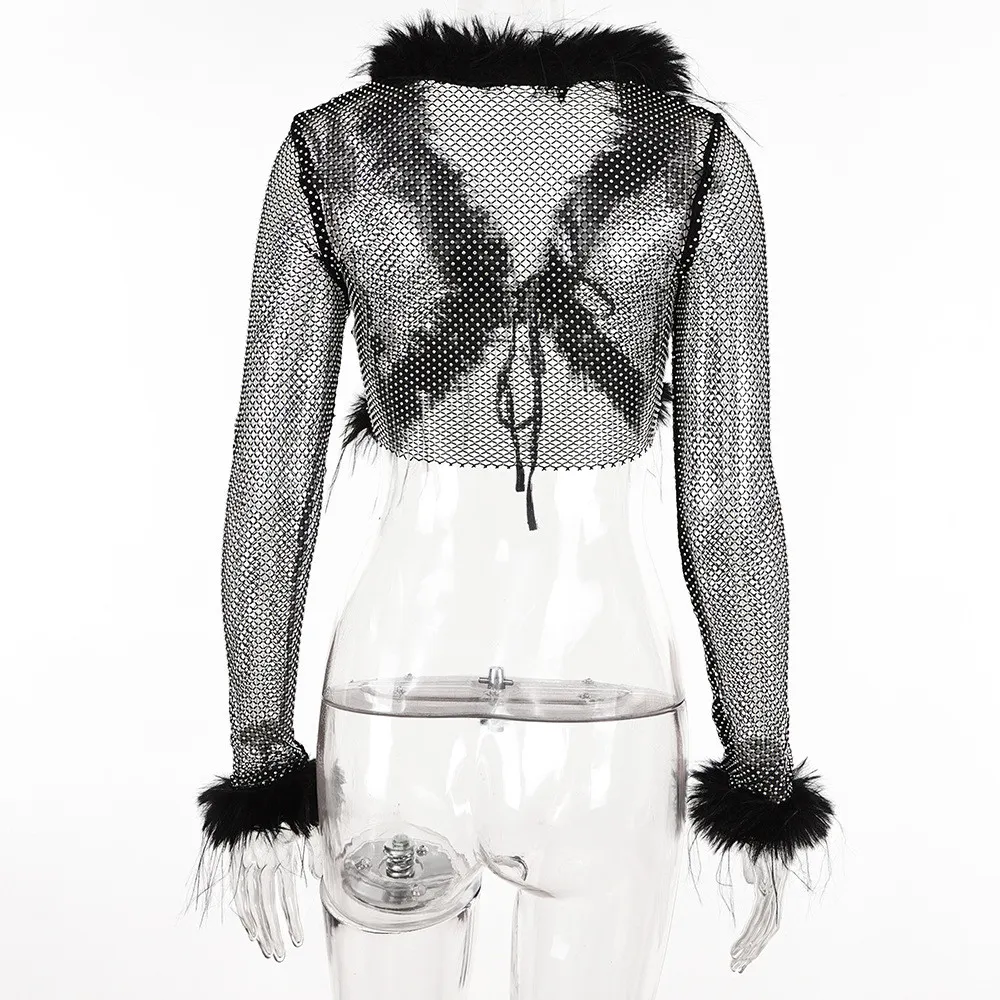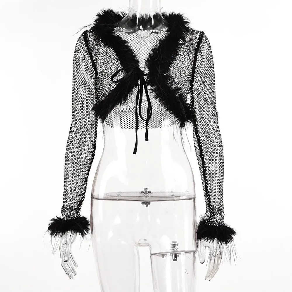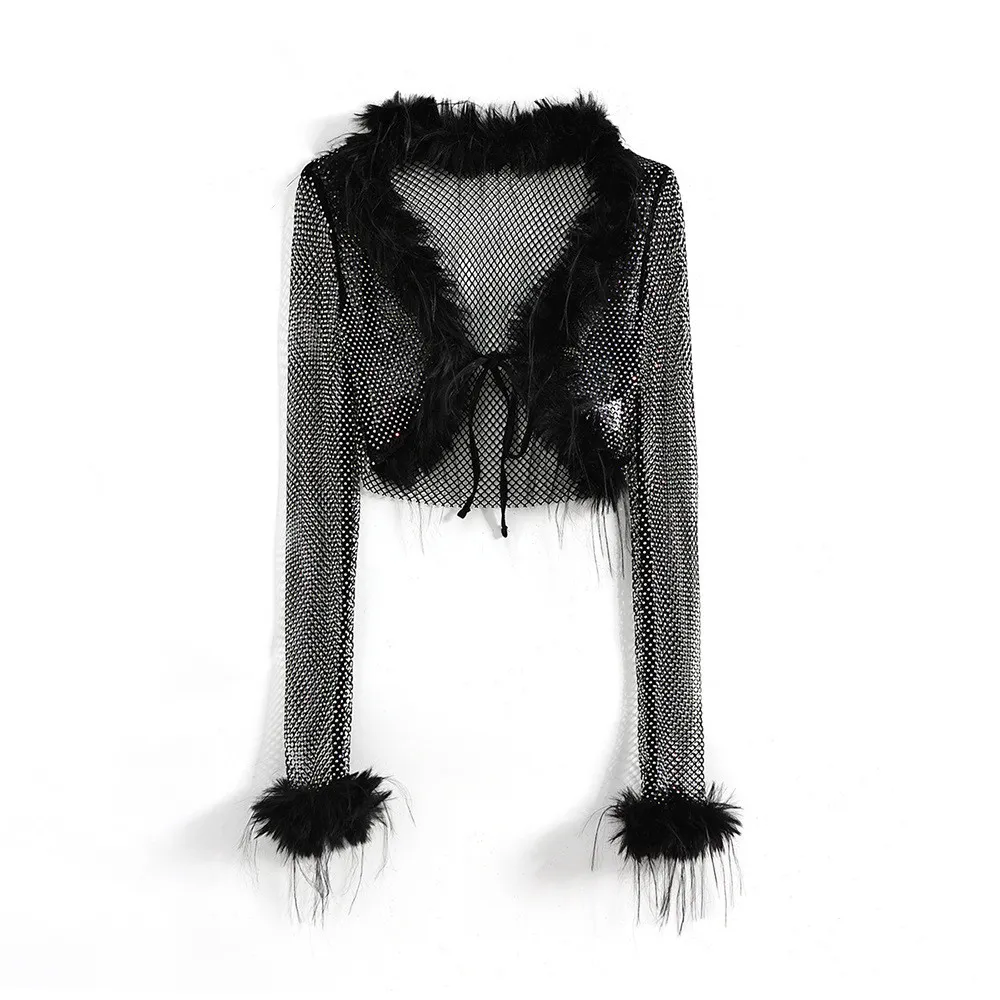 | Product Name | Women Beaded See-Through Sexy Crop Long Sleeve Lace-Up Top |