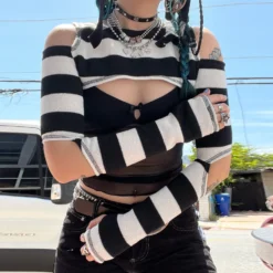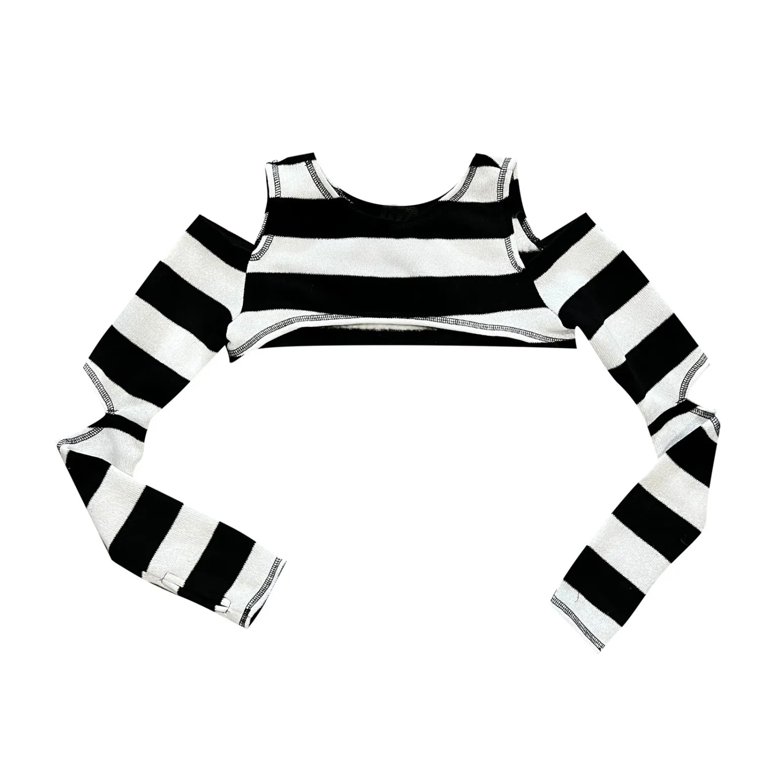 | Product Name | Women Black & White Striped Long Sleeve Crop Top |