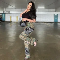 | Product Name | Women Camo Print Casual Cargo Pant |