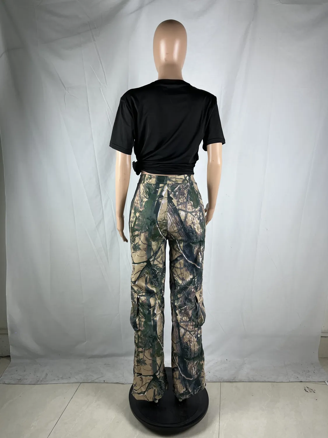 | Product Name | Women Casual Camouflage Print Cargo Pants |