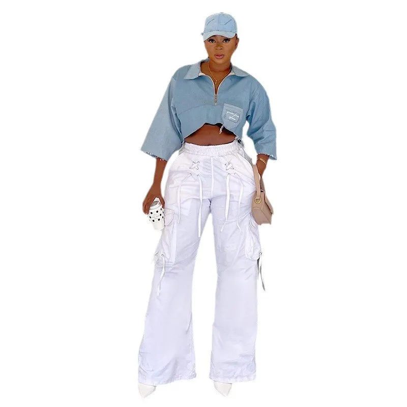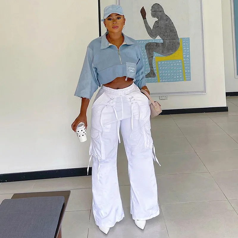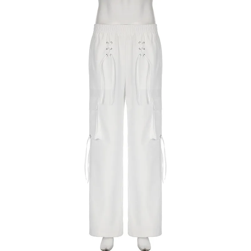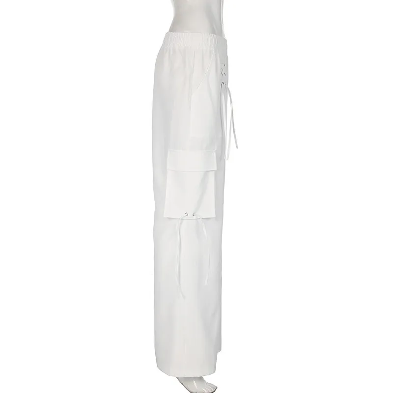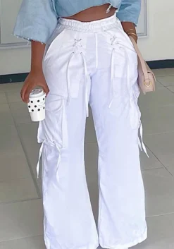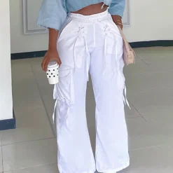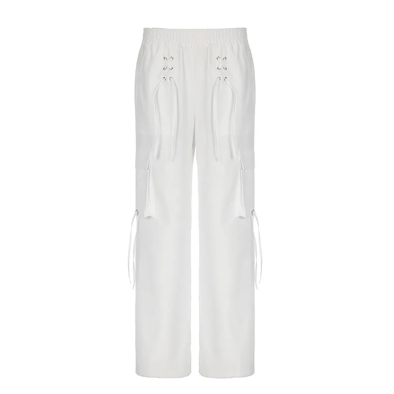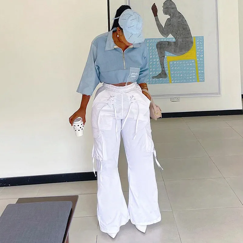 | Product Name | Women Casual Ribbon High Waist Loose Cargo Pants |