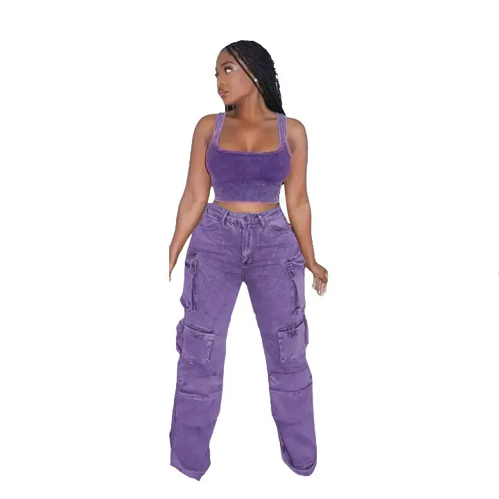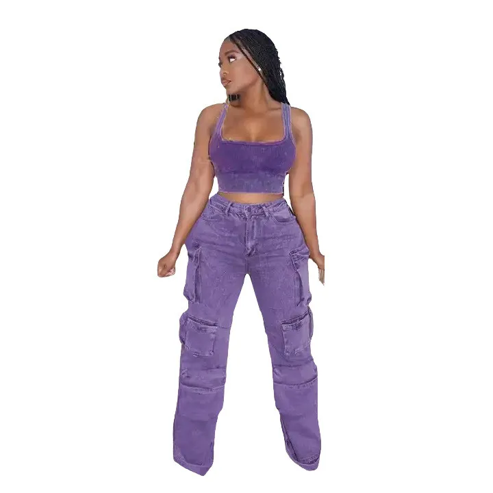 | Product Name | Women Casual Tie Dye Denim Cargo Pants |