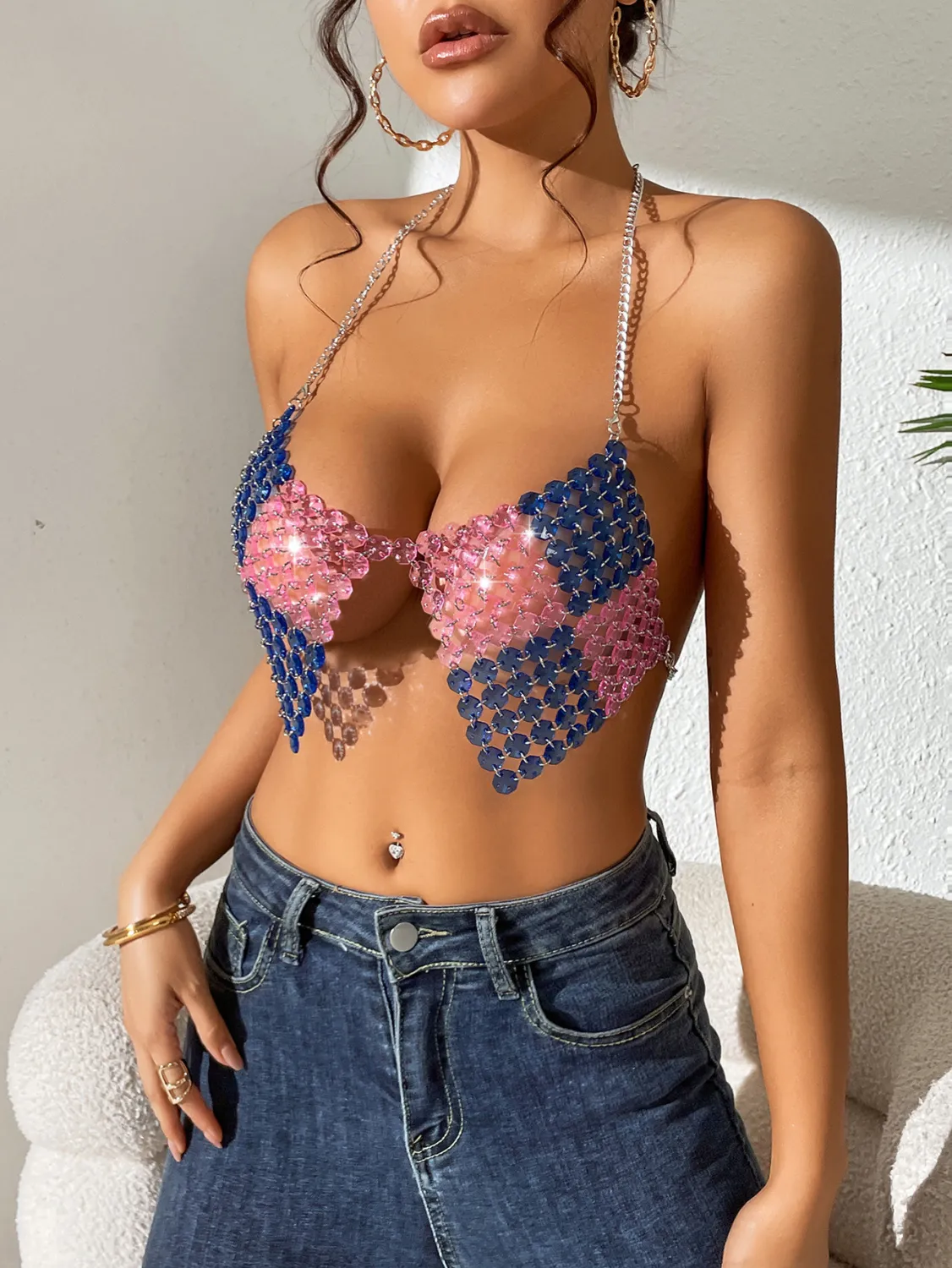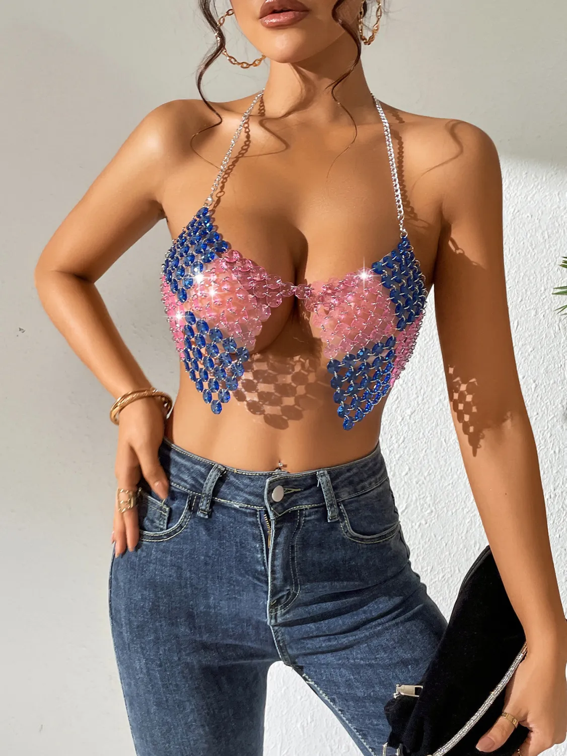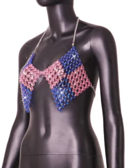 | Product Name | Women ColorBlock Gemstone Sexy Backless Crop Top |