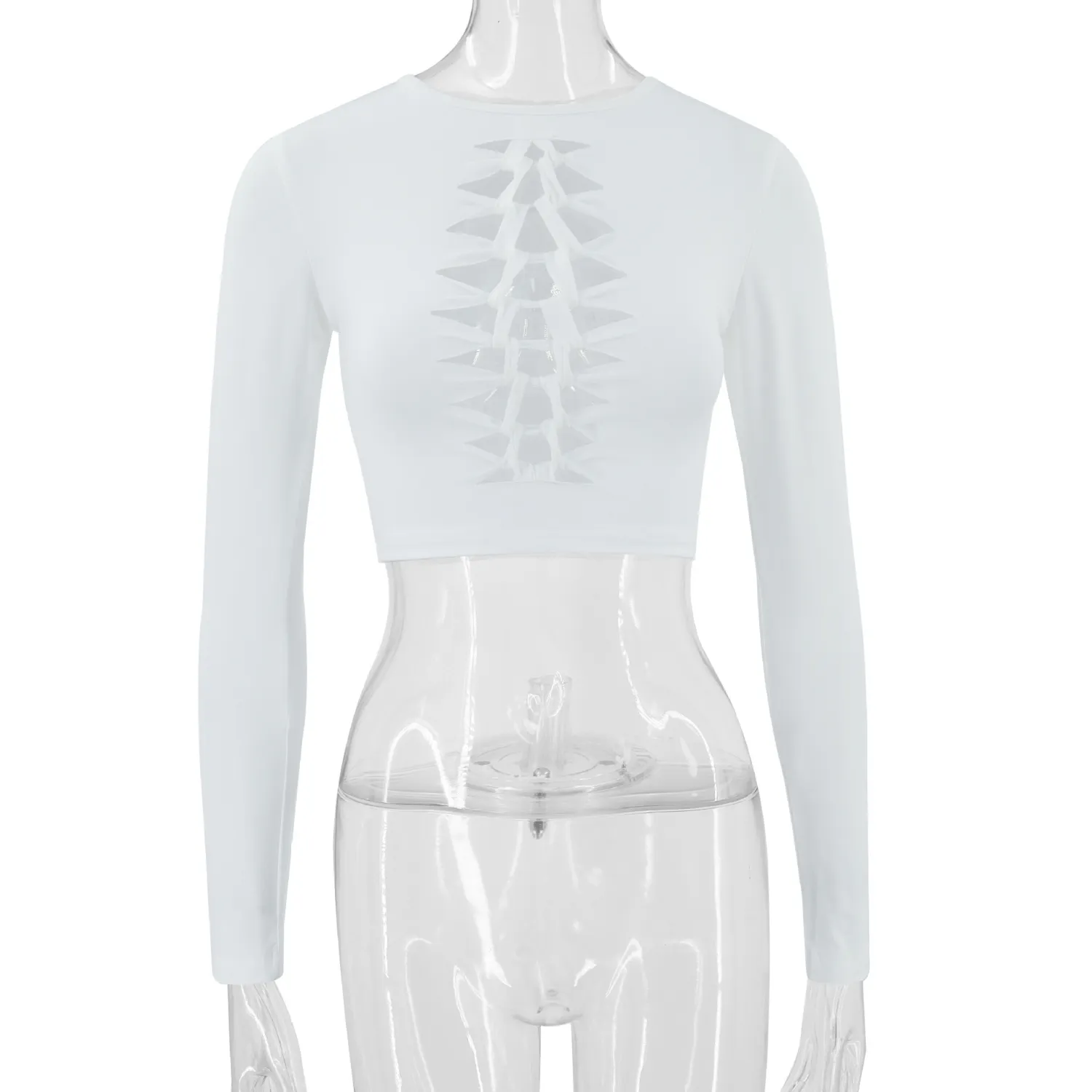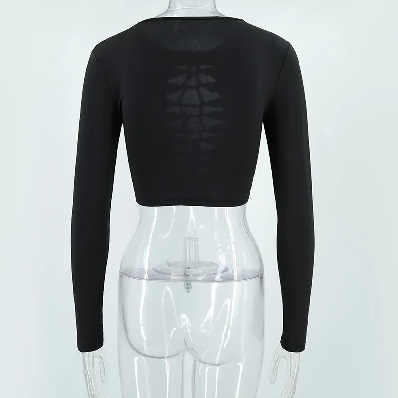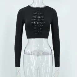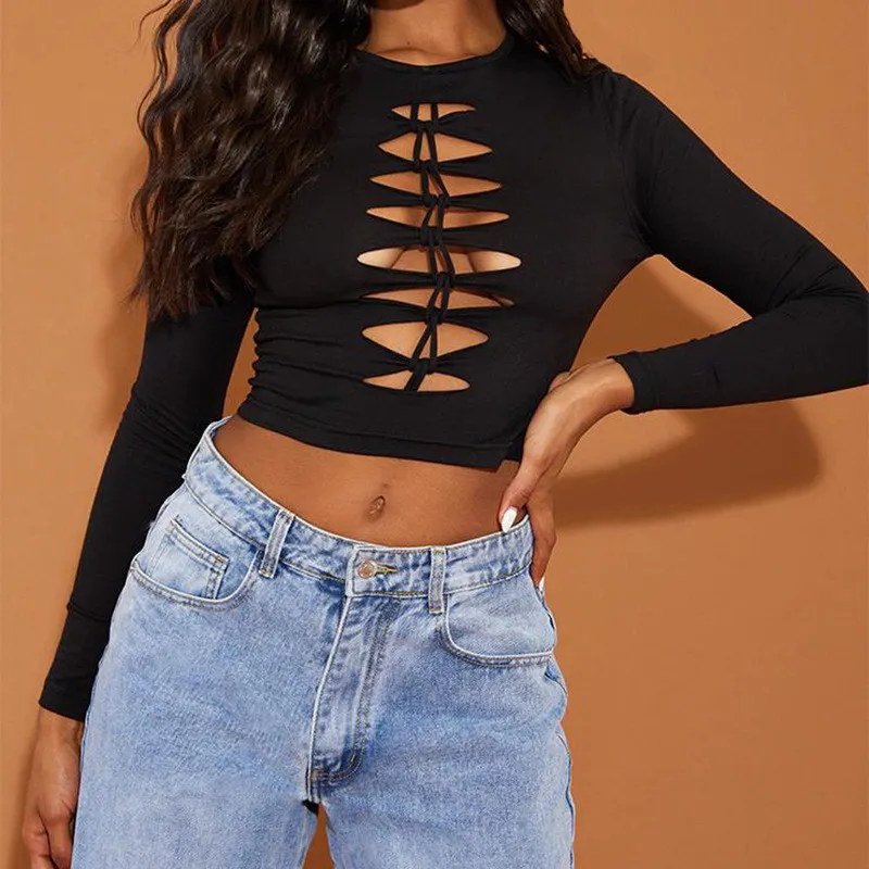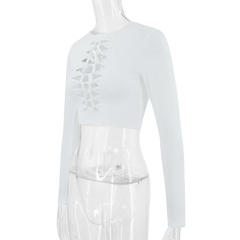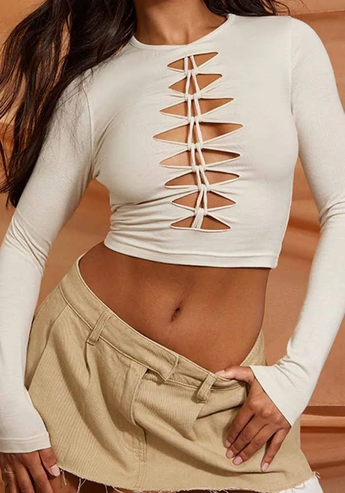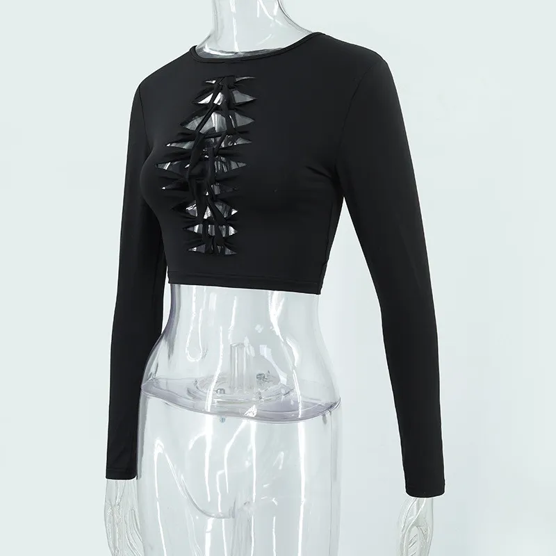 | Product Name | Women Cutout Lace-Up Long Sleeve Crop T-Shirt |