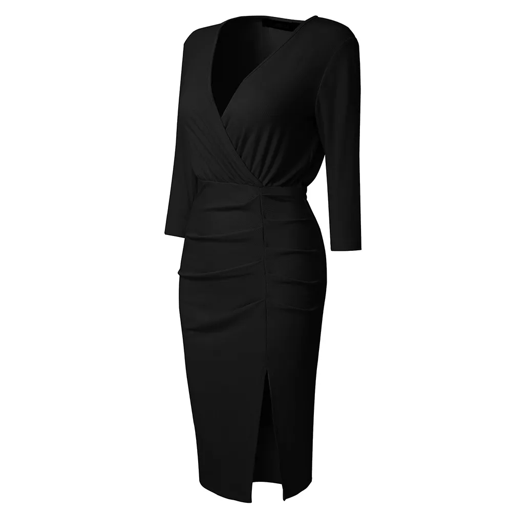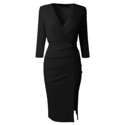| Product Name | Women Elegant V-Neck Pleated Bodycon Work Dress |