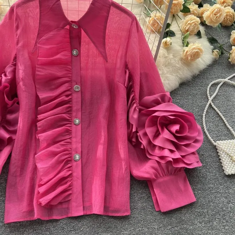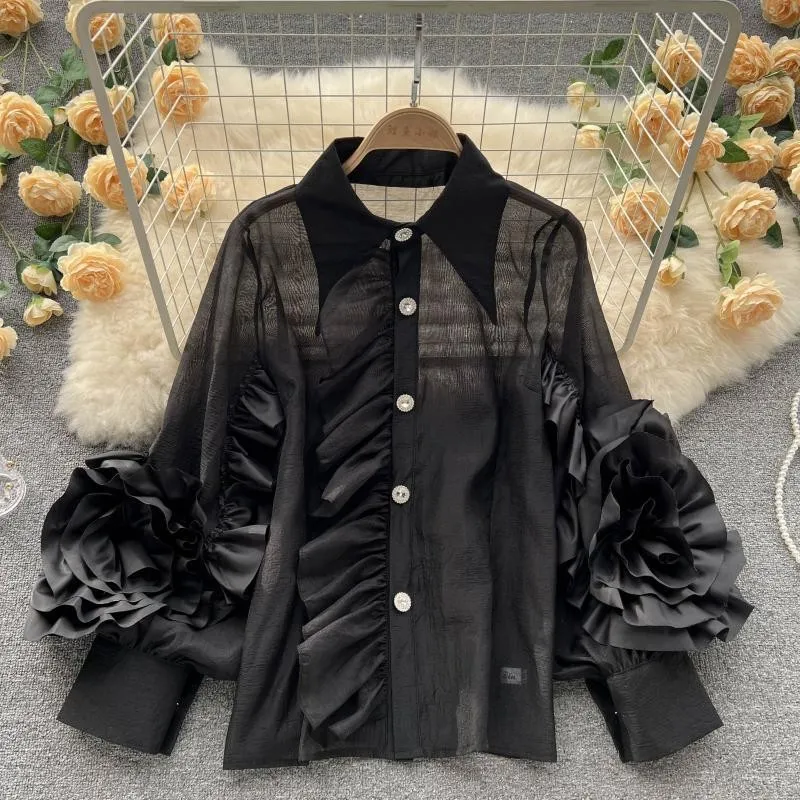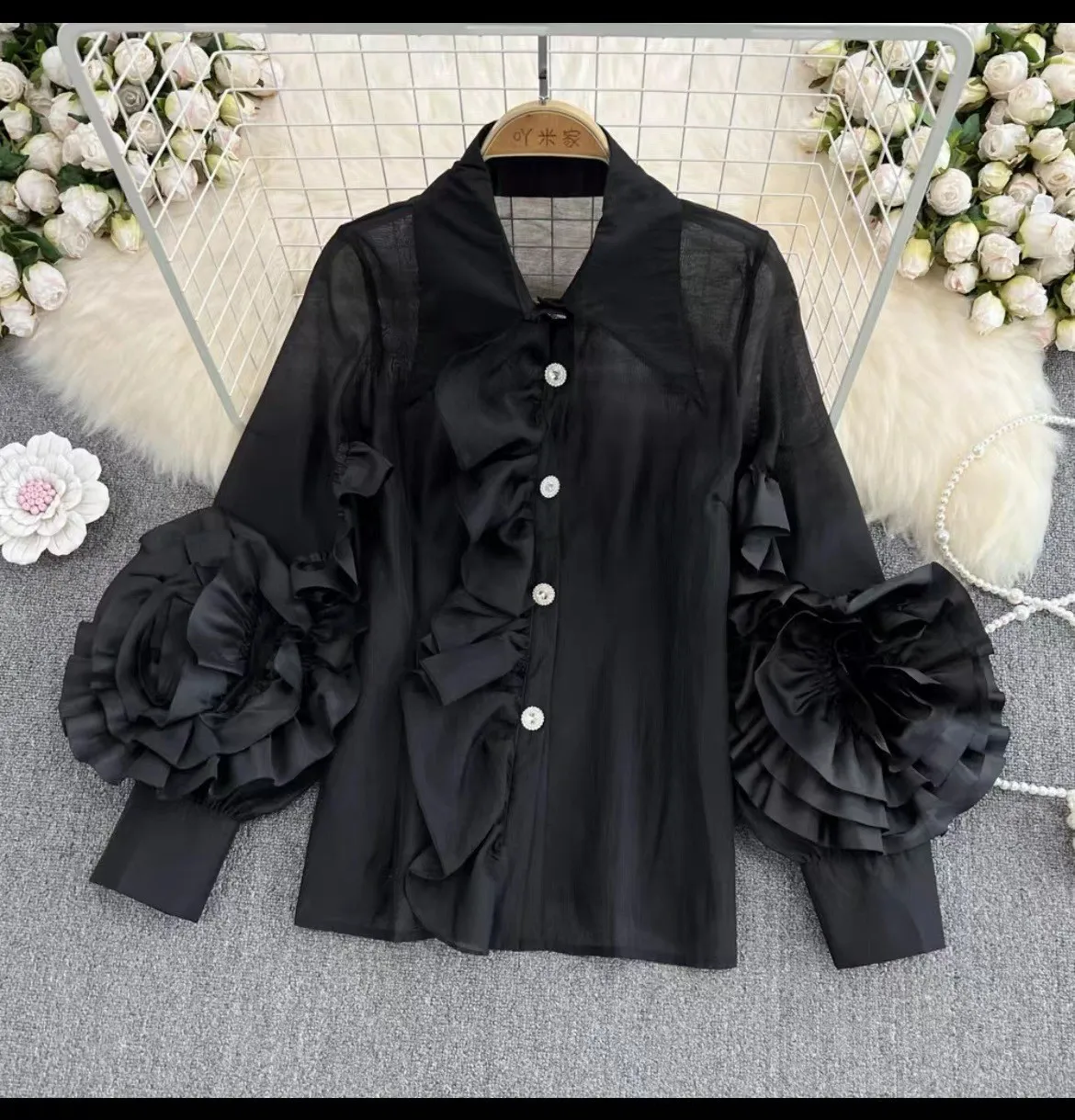 | Product Name | Women Fashion Turndown Collar Ruffled Loose Shirt |