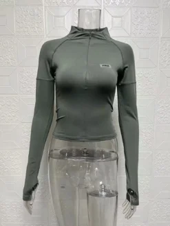| Product Name | Women Half Turtle Collar Zip Long Sleeve Basic T-Shirt |