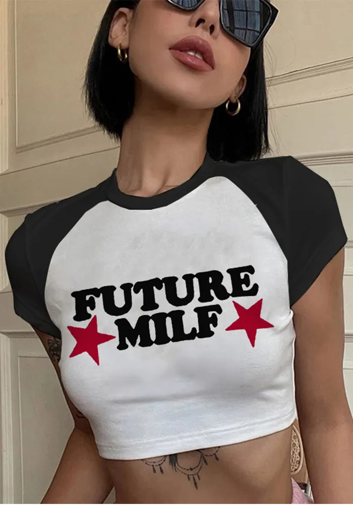 | Product Name | Women Printed Black Sleeve Crop Short Sleeve T-Shirt |