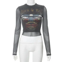 | Product Name | Women Printed Long Sleeve Sexy See-Through Crop Top |