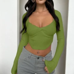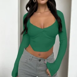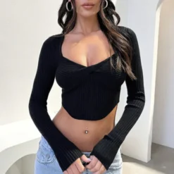 | Product Name | Women Ribbed Knot Square Neck Long Sleeve T-Shirt |