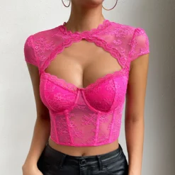 This Women Round Neck Lace Diamond Sexy Hollow Steel Ring Fishbone Crop Top Design Made Of Thick Polyster And Spandex Materail, Which Is Soft And Comfortable. Crop Tops For Women Almost Earn Enough Rate Of Second Glance In Summer. Cute Crop Tops Has Become a Summer Collocation Method Especially Favored By Young Ladies. Find Huge Selection Of Cheap Wholesale Sexy Crop Tops At Global Lover Now.