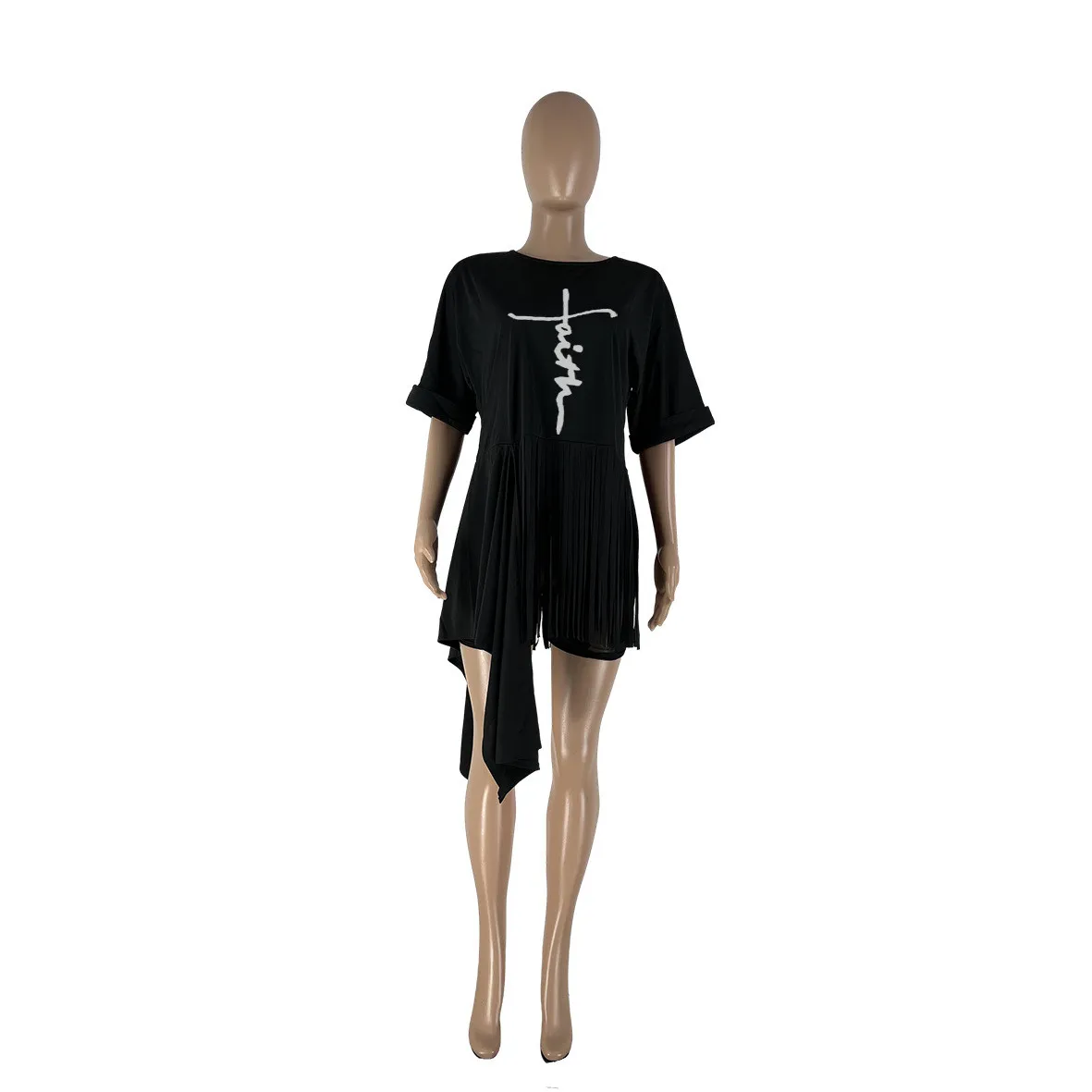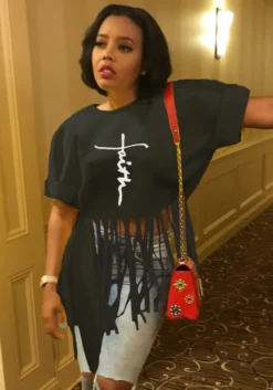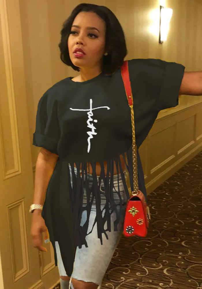 | Product Name | Women Round Neck Short Sleeve Printed Fringe T-Shirt |
