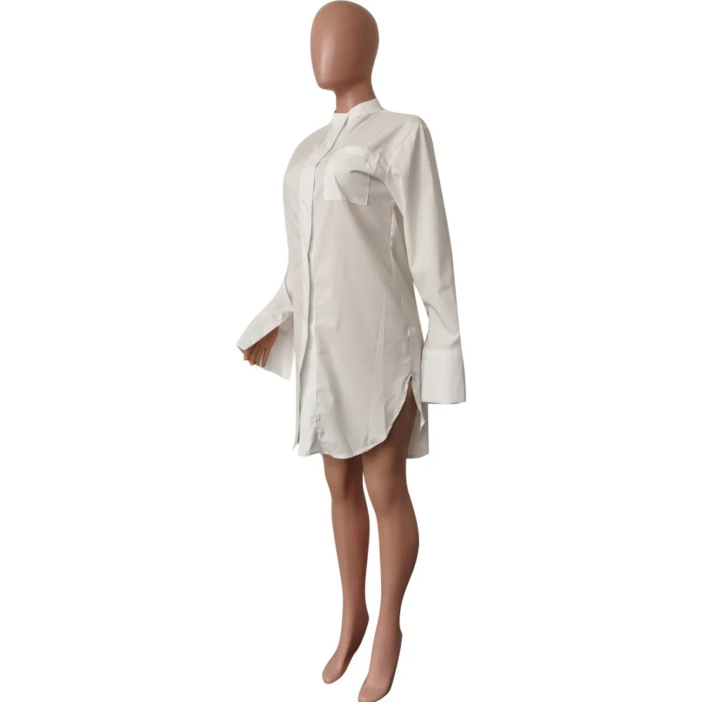 | Product Name | Women’S Autumn And Winter New Fashion Polo Collar Skirt Sexy Side Slit Solid Color Shirt |