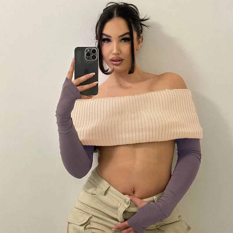 This Women’s Autumn Contrast Color Off Shoulder Long Sleeve Crop Top Two Piece Set Design Made Of Thick Polyster And Spandex Materail, Which Is Soft And Comfortable. Crop Tops For Women Almost Earn Enough Rate Of Second Glance In Summer. Cute Crop Tops Has Become a Summer Collocation Method Especially Favored By Young Ladies. Find Huge Selection Of Cheap Wholesale Sexy Crop Tops At Global Lover Now.