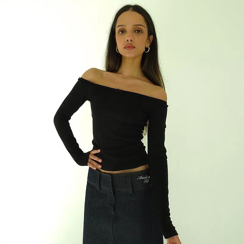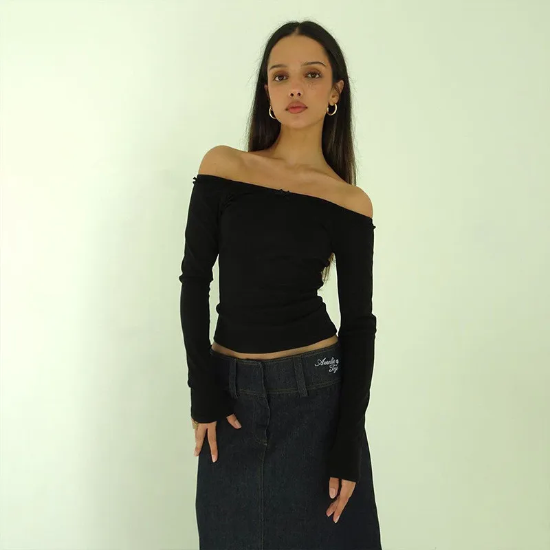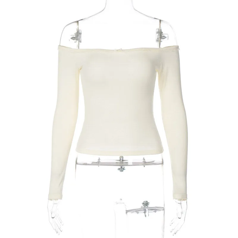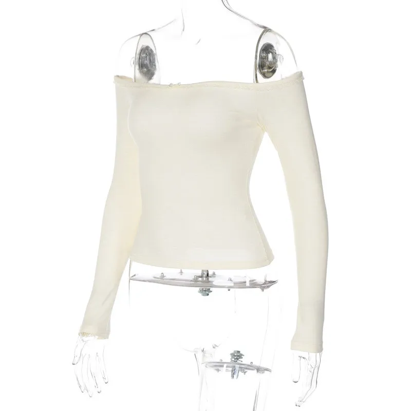 | Product Name | Women’s Autumn Sexy Off Shoulder Long Sleeve Solid Color T-Shirt Top |