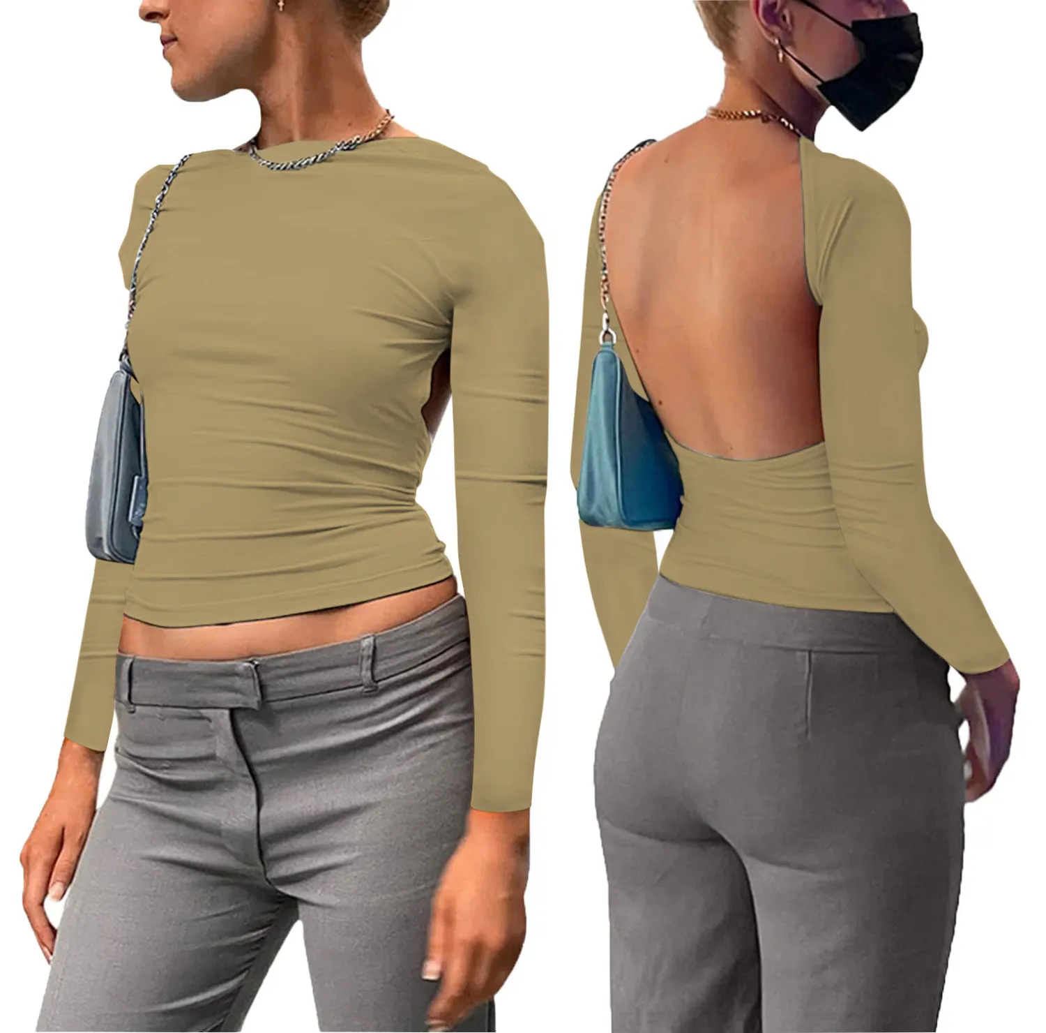 | Product Name | Women’s autumn solid color front and back reversible small t-shirt tops |