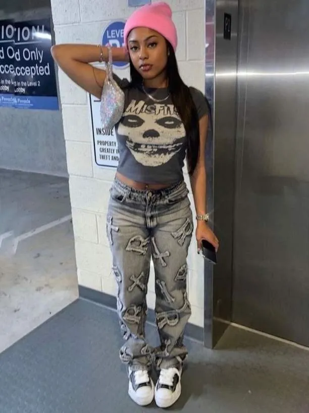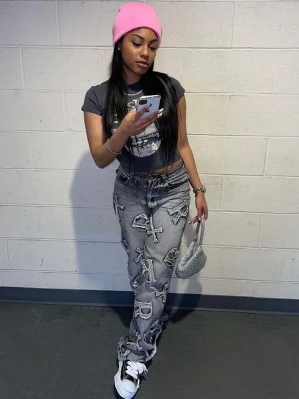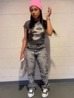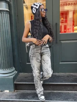 | Product Name | Women’s Autumn Street Trendy Letter Printed High Waist Zipper Pocket Pants |
