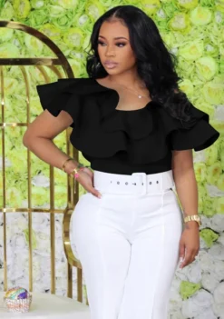 This Women’s Clothes Double Layer Rufflenightclubs Tops t-Shirts Is Soft And Comfortable. From Street Style Cropped To Party Sexy Satin Tunics Blouse, From Office Elegant Silk To Holiday Loose Cut Chiffon Blouse, From Classic Stripes To Plaid Shirt, From Basic White Color To Printed Floral Blouse. Wholesale Blouses And Tops For Ladies Is a Must-Have Item On Your Everyday Life. Global Lover Shirts And Blouses Online Are Available In Wide Range Designs. When You Need More Wholesale Women Clothing, You Can Always Find Something Special That You Really Can Not Get From Other Places.