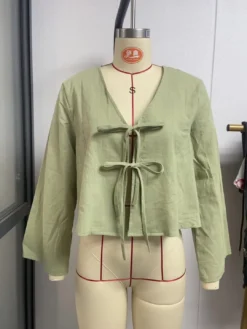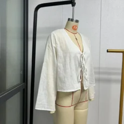 | Product Name | Women’s Deep V Bell Bottom Sleeve Lace-Up Tops |