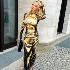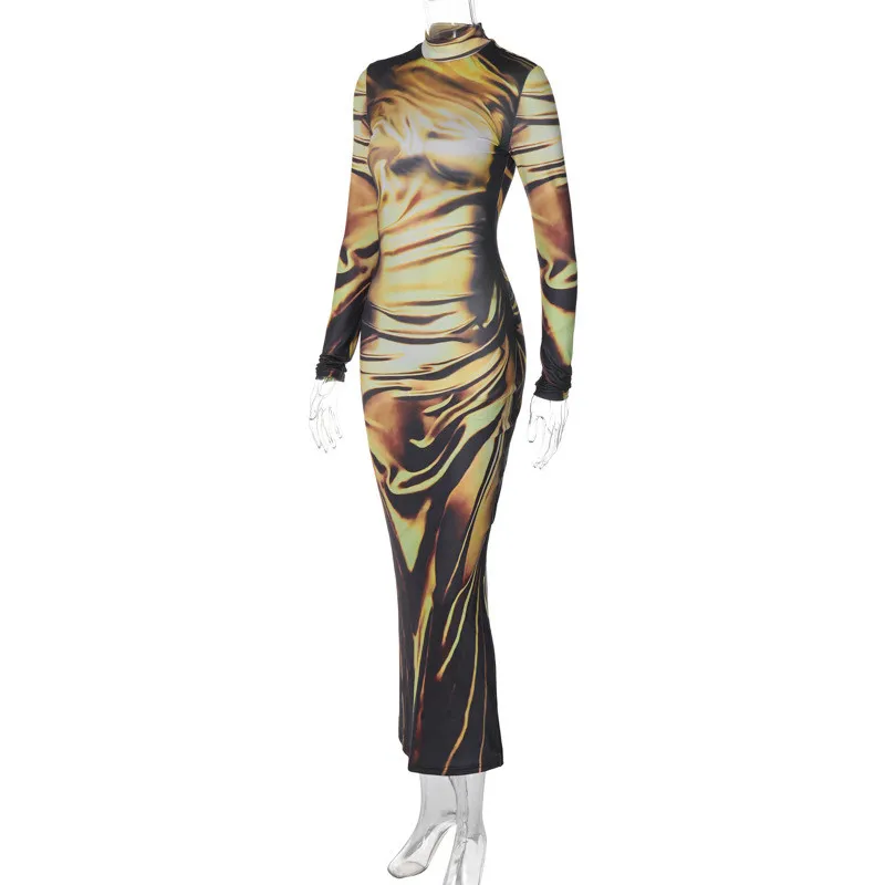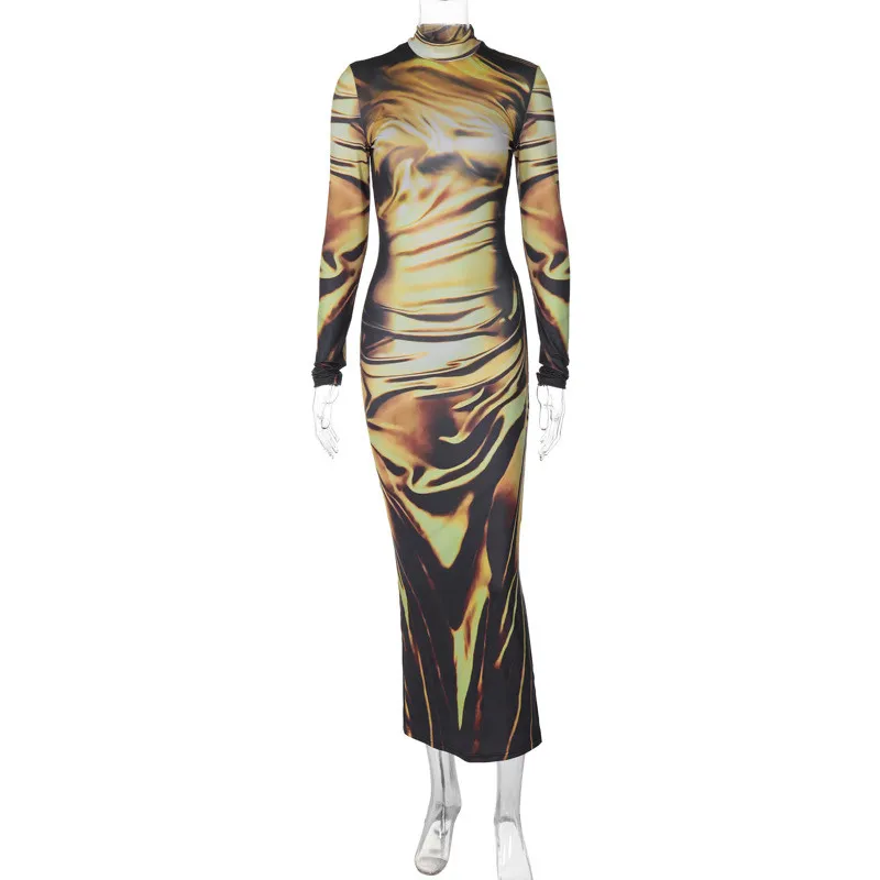 | Product Name | Women’s Fall/Spring Style Abstract Graphic Print Maxi Dress |