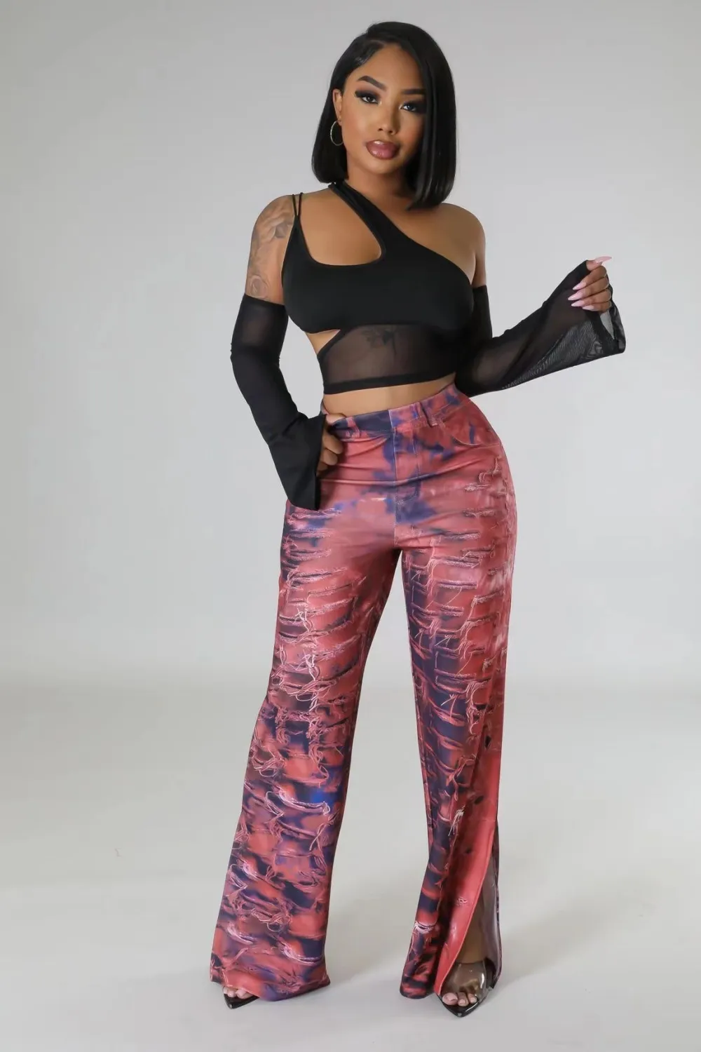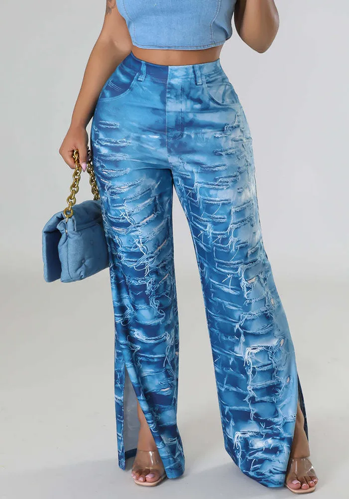 | Product Name | Women’s Fashion Sexy Positioning Print Wide Leg Slit Pants |
