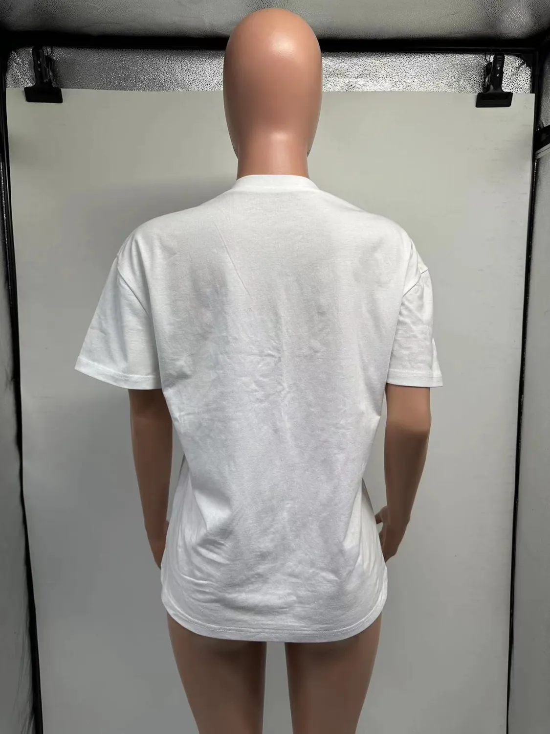 This Women’s Fashion Summer Graffiti Print Solid Color All-Match t-Shirt Design Made Of Thick Polyster And Spandex Materail, Which Is Soft And Comfortable. It Is a Must-Have Item For All Seasons. Global Lover Offer Most Fashionable Wholesale Women’s t Shirts – From Basic White And Black t Shirts To Lace, And Print t Shirts For Wholesale. We Also Make Customized Shirt With Your Personalized Logo And Print With Low Moq.