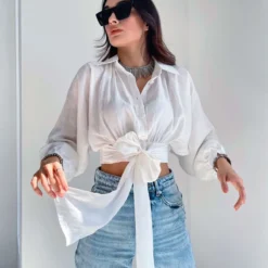 | Product Name | Women’s Lace Up Long Sleeve Cardigan Spring Summer Bat Sleeves Crop Loose Shirt |