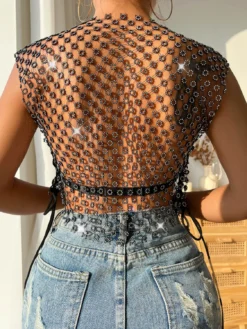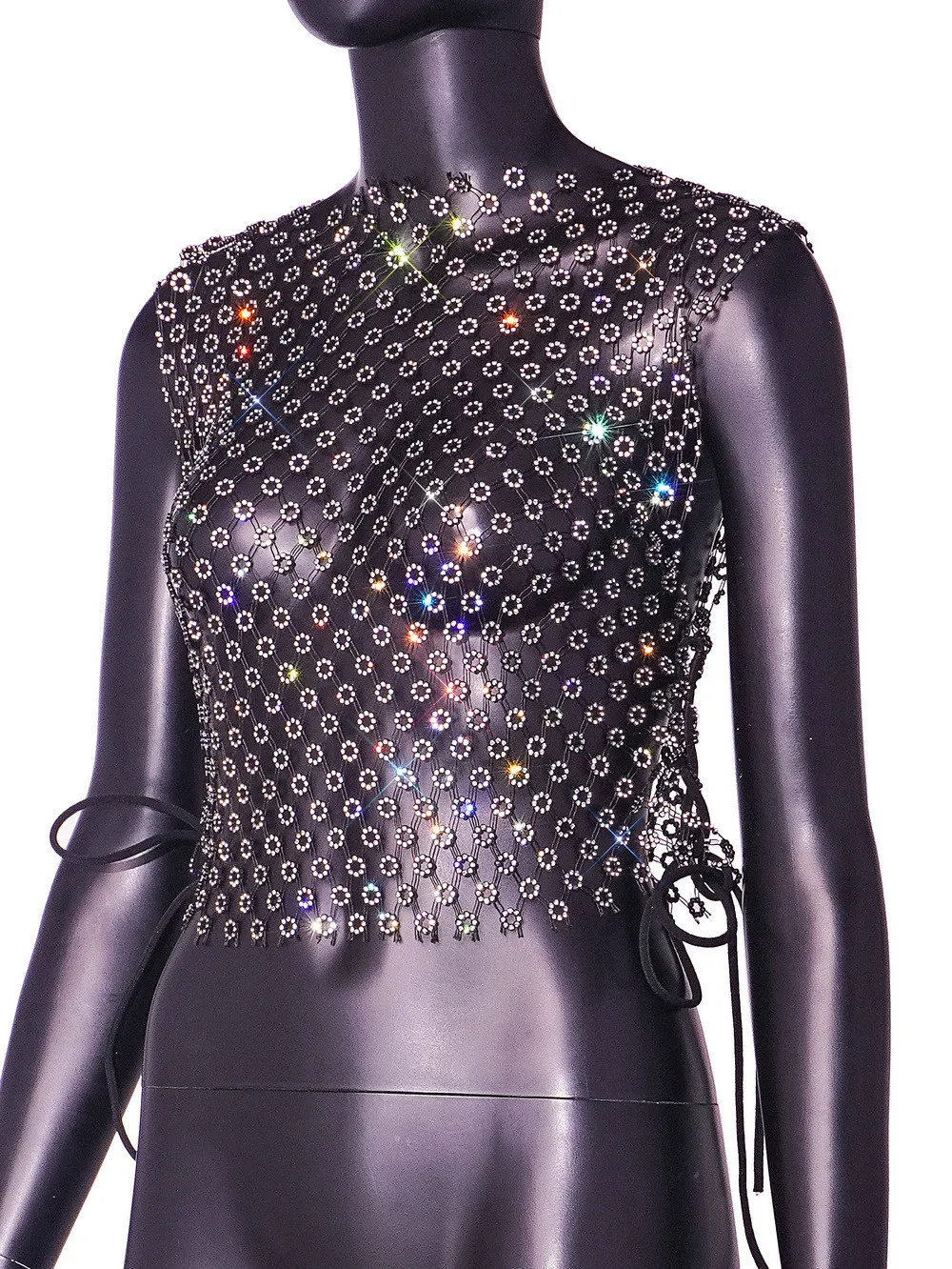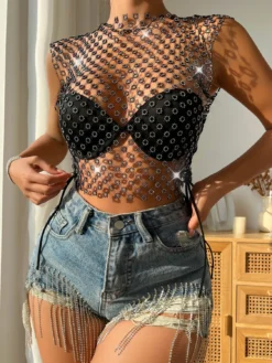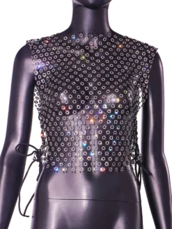 | Product Name | Women’s Sexy Hollow Mesh Rhinestone Sleeveless Vest Top |