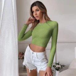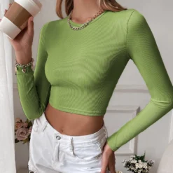 | Product Name | Women’S Sexy Low Back Casual Cropped Slim Fit Knitting Long Sleeve T-Shirt Top Basic Outdoor Wear |
