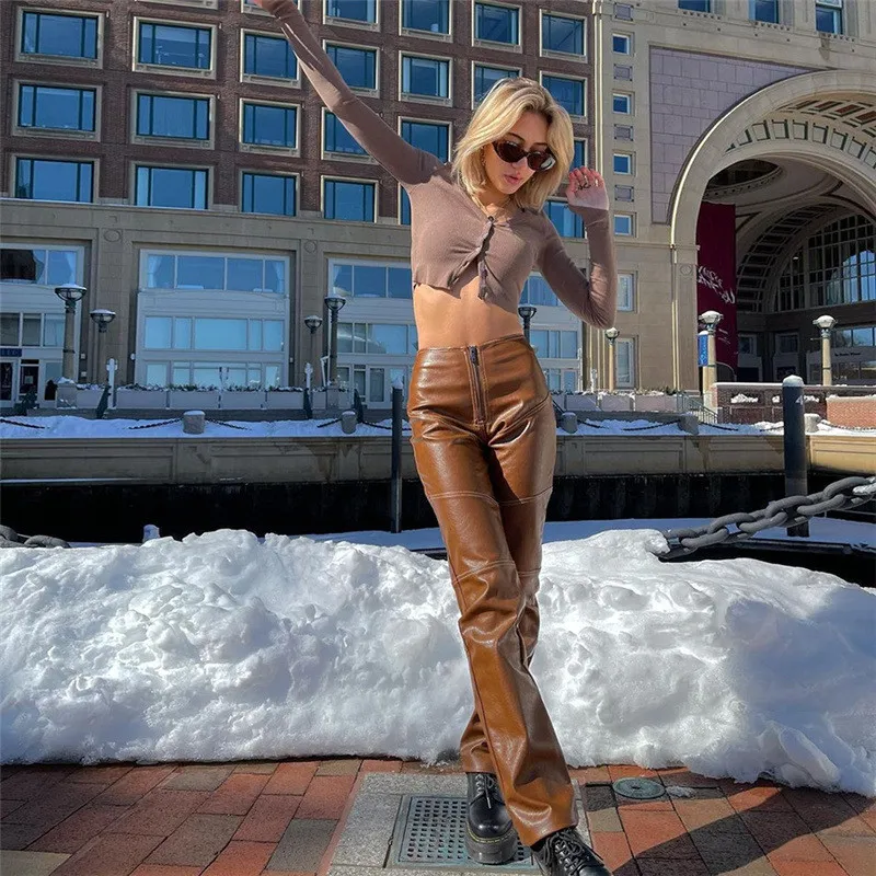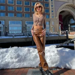 | Product Name | Women’s slim pu trousers straight leg pants for women |