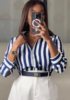| Product Name | Women’s Spring Fashionable Blue Striped Shirt |