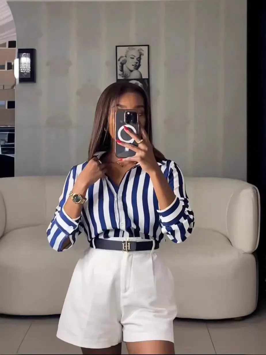 This Women’s Spring Fashionable Blue Striped Shirt Is Soft And Comfortable. From Street Style Cropped To Party Sexy Satin Tunics Blouse, From Office Elegant Silk To Holiday Loose Cut Chiffon Blouse, From Classic Stripes To Plaid Shirt, From Basic White Color To Printed Floral Blouse. Wholesale Blouses And Tops For Ladies Is a Must-Have Item On Your Everyday Life. Global Lover Shirts And Blouses Online Are Available In Wide Range Designs. When You Need More Wholesale Women Clothing, You Can Always Find Something Special That You Really Can Not Get From Other Places.
