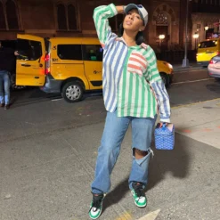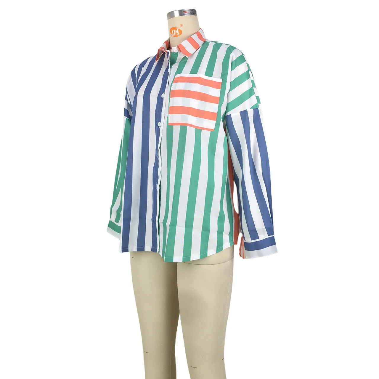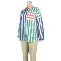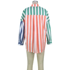 | Product Name | Women’s Striped Button Pocket Front Short Back Long Contrast Shirt |
