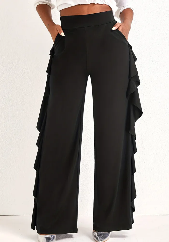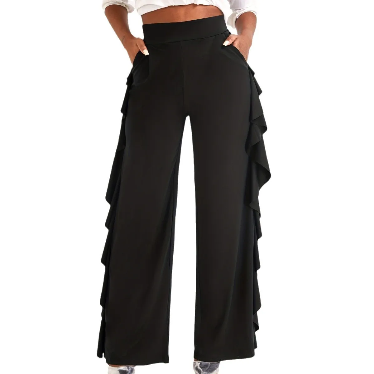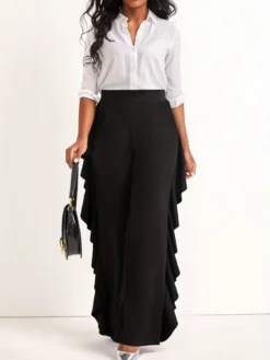 | Product Name | Women’s Stylish Elegant Ruffled Solid Color High Waisted Casual Wide Leg Pants |