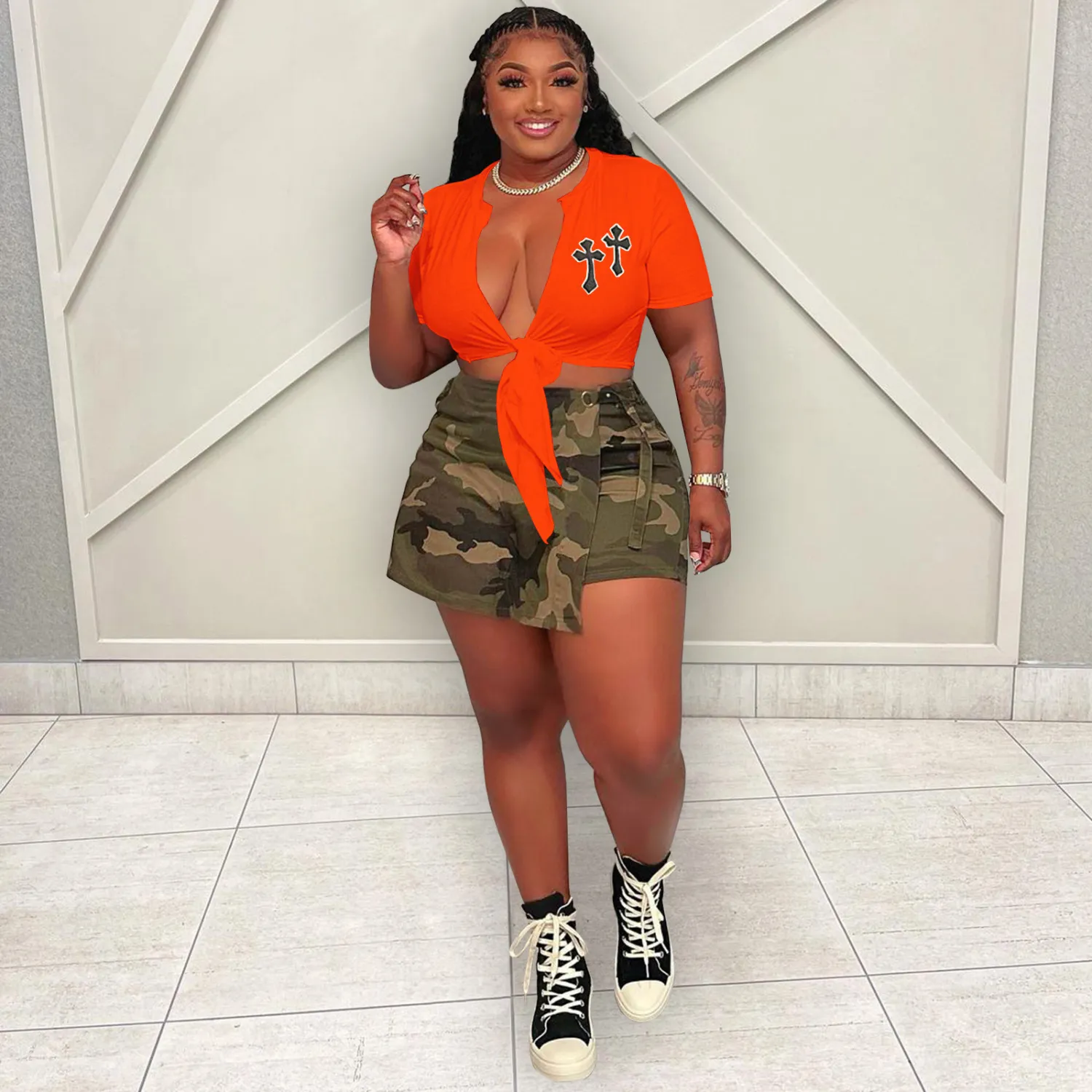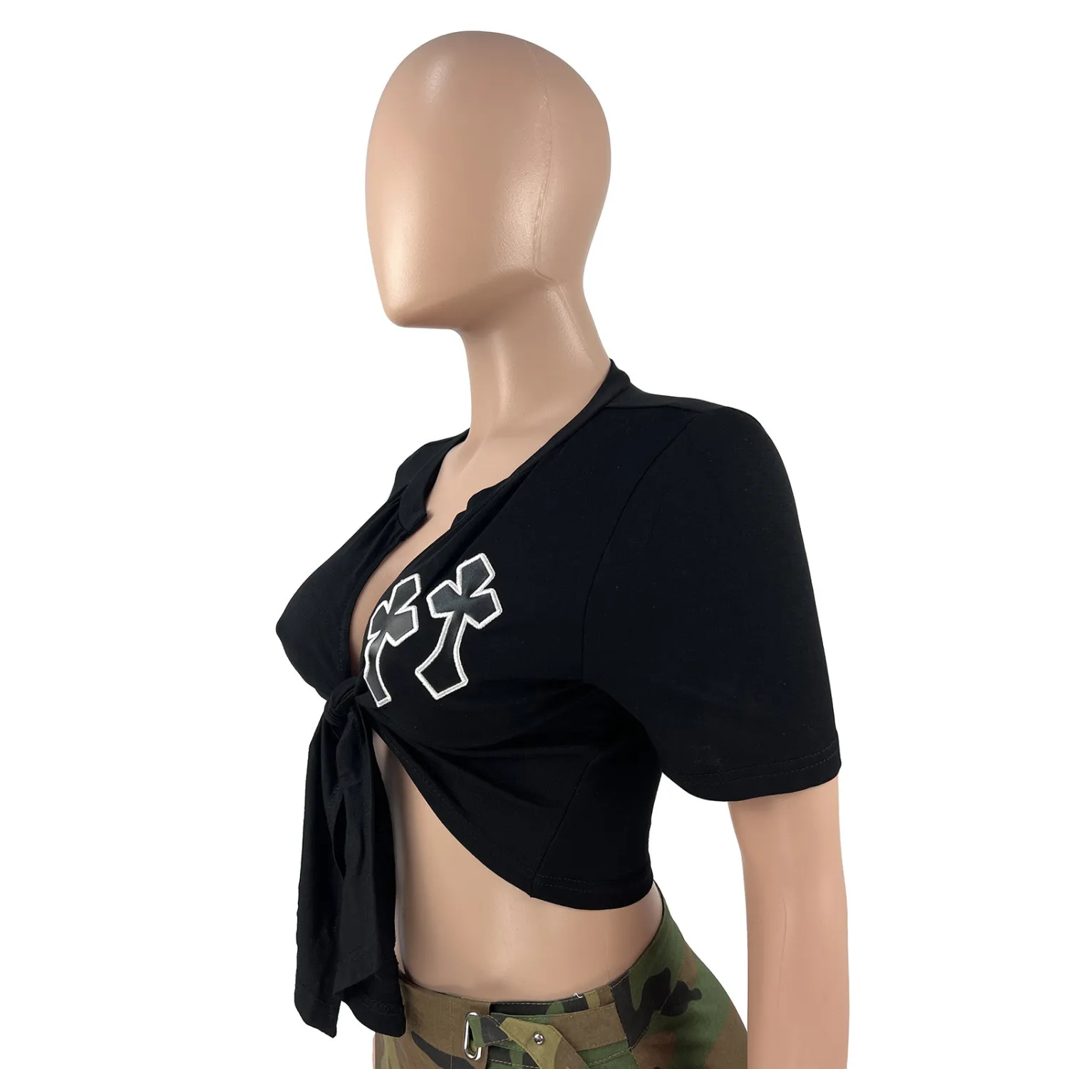 | Product Name | Women’S Summer Double Cross Embroidered Cutout Lace-Up T-Shirt |