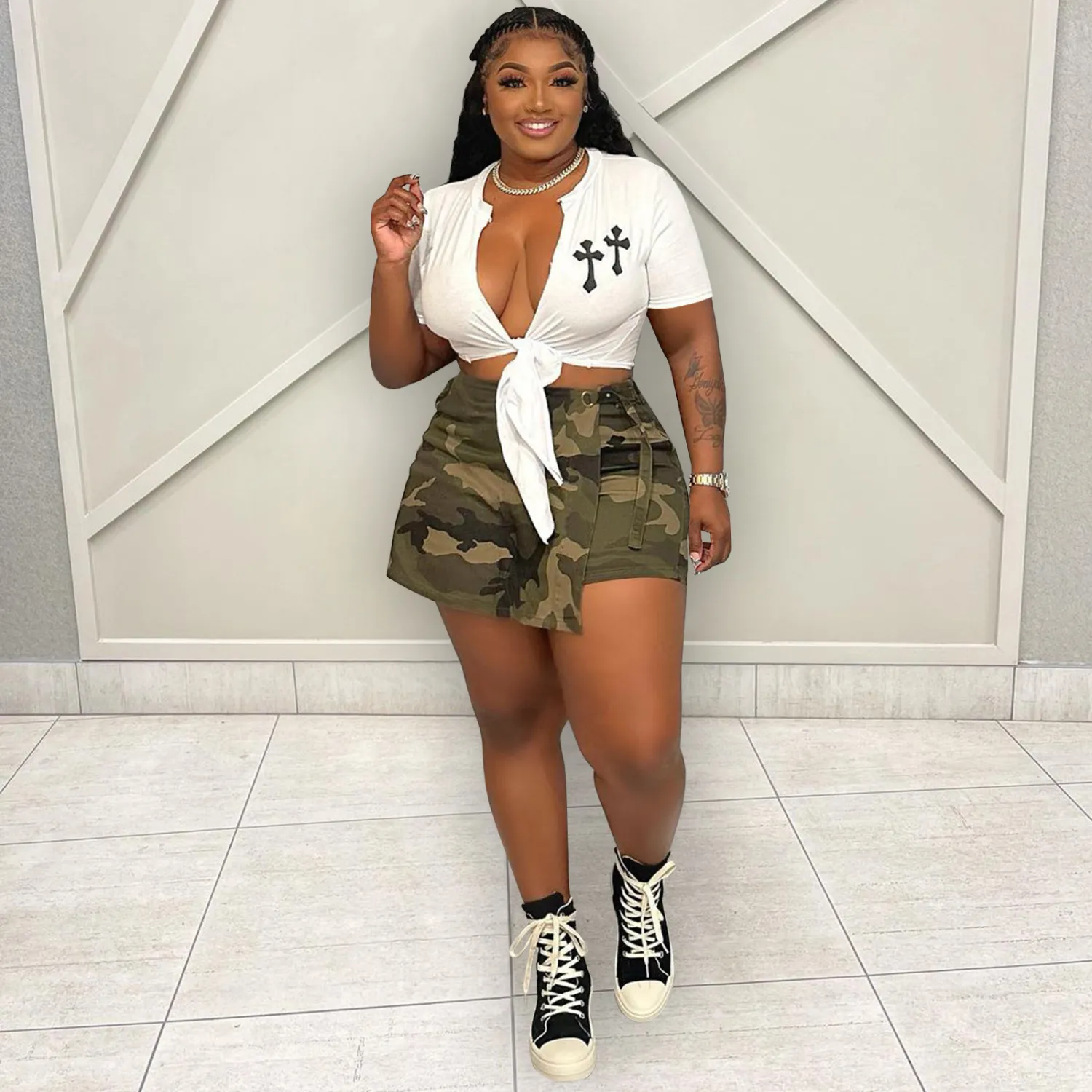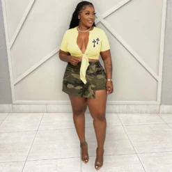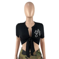 This Women’s Summer Double Cross Embroidered Cutout Lace-Up t-Shirt Design Made Of Thick Polyster And Spandex Materail, Which Is Soft And Comfortable. It Is a Must-Have Item For All Seasons. Global Lover Offer Most Fashionable Wholesale Women’s t Shirts – From Basic White And Black t Shirts To Lace, And Print t Shirts For Wholesale. We Also Make Customized Shirt With Your Personalized Logo And Print With Low Moq.