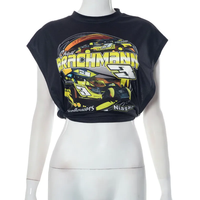 | Product Name | Women’s Summer Fashion Street Sleeveless Print Side Open Tie T-Shirt Top |