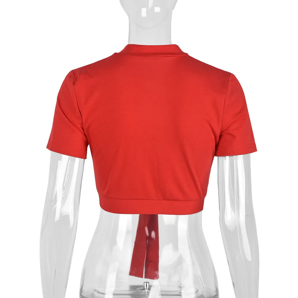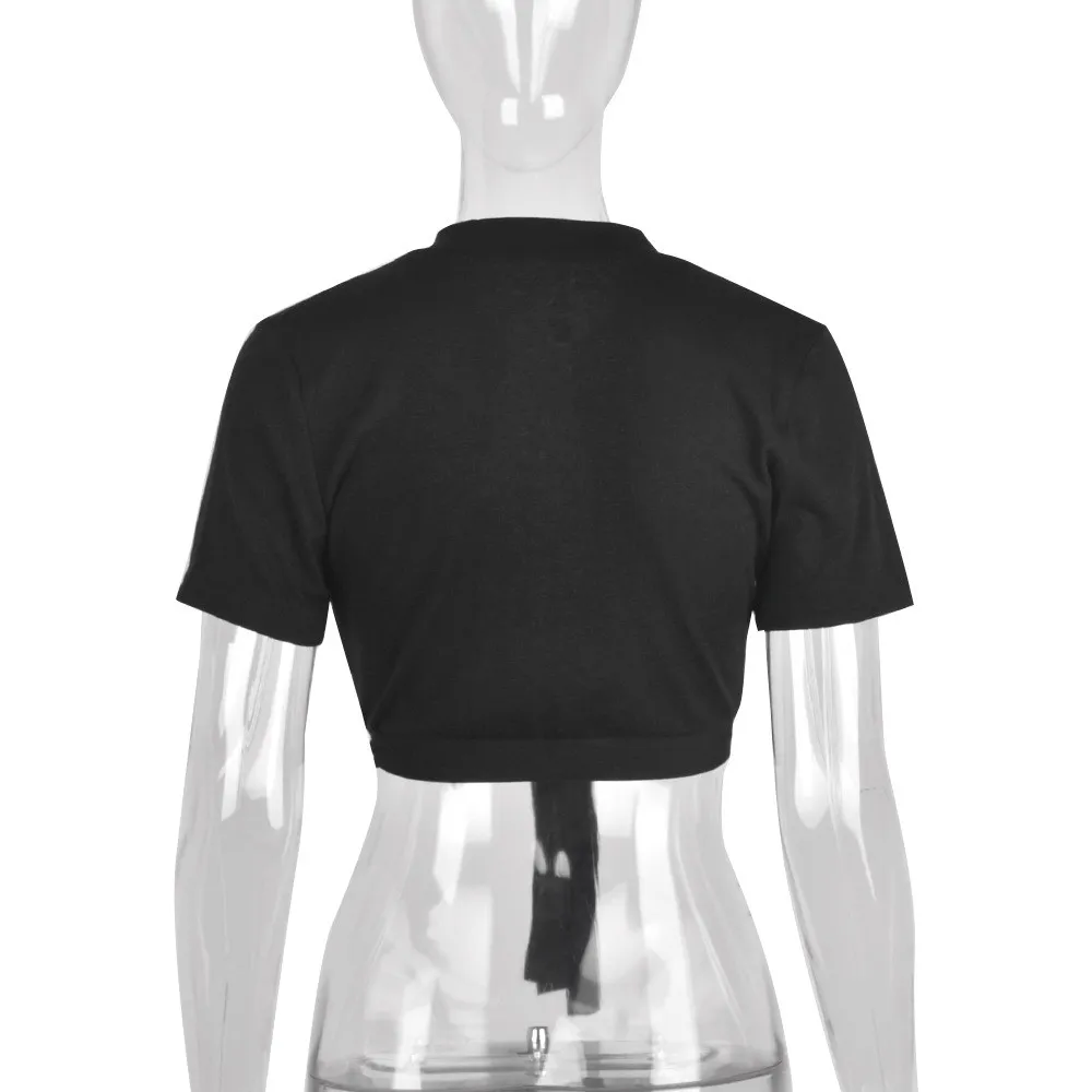 | Product Name | Women’s Summer Lace-Up Sexy Top with Hollow Out Short Sleeves T-Shirt |