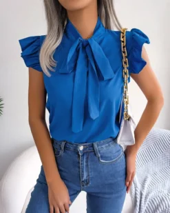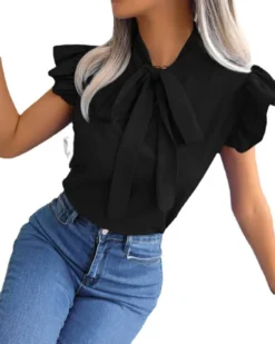 | Product Name | Women’S Summer Solid Color Simple Bowknot Short Sleeve Shirt |