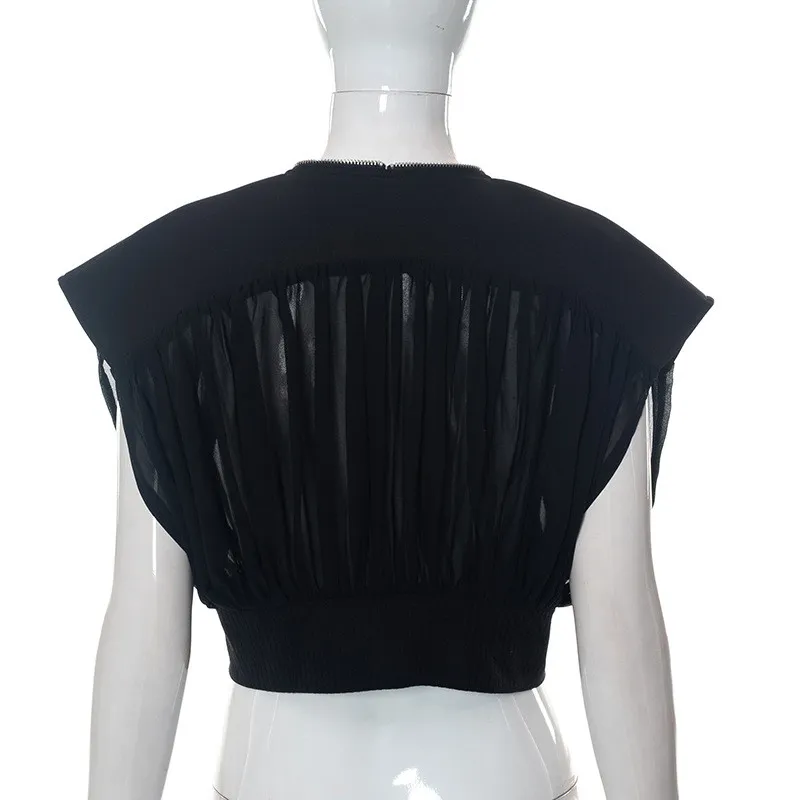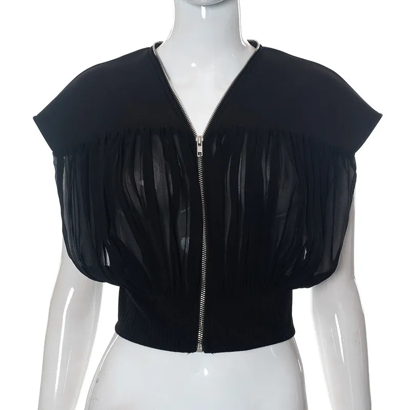 | Product Name | Women’S Summer Solid Zip Patchwork Cover Up Mesh Top |