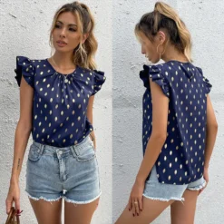 | Product Name | Women’s Summer Tops Short Sleeve Round Neck Ruffle Fly Sleeve Polka Dot Shirt |