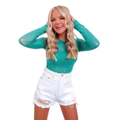 This Women See-Through Beaded Long Sleeve Top Design Made Of Thick Polyster And Spandex Materail, Which Is Soft And Comfortable. It Is a Must-Have Item For All Seasons. Global Lover Offer Most Fashionable Wholesale Women’s t Shirts – From Basic White And Black t Shirts To Lace, And Print t Shirts For Wholesale. We Also Make Customized Shirt With Your Personalized Logo And Print With Low Moq.